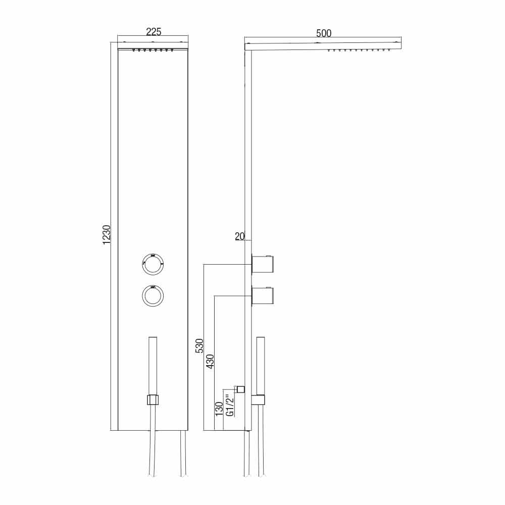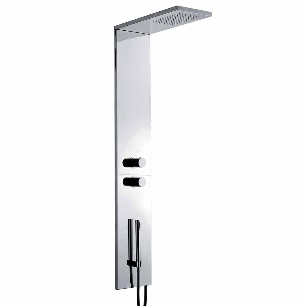 Modern and elegant thermostatic wall shower column made entirely in Italy in stainless steel with chrome finish. The encounter between functionality and design brings to life a wonderful piece of furniture, ideal for completing and enriching any bathroom with contemporary features with originality. Its geometric lines with essential features create the perfect shower column for those looking for a sophisticated and extremely innovative taste capable of revolutionizing the furniture by bringing a touch of personality .
