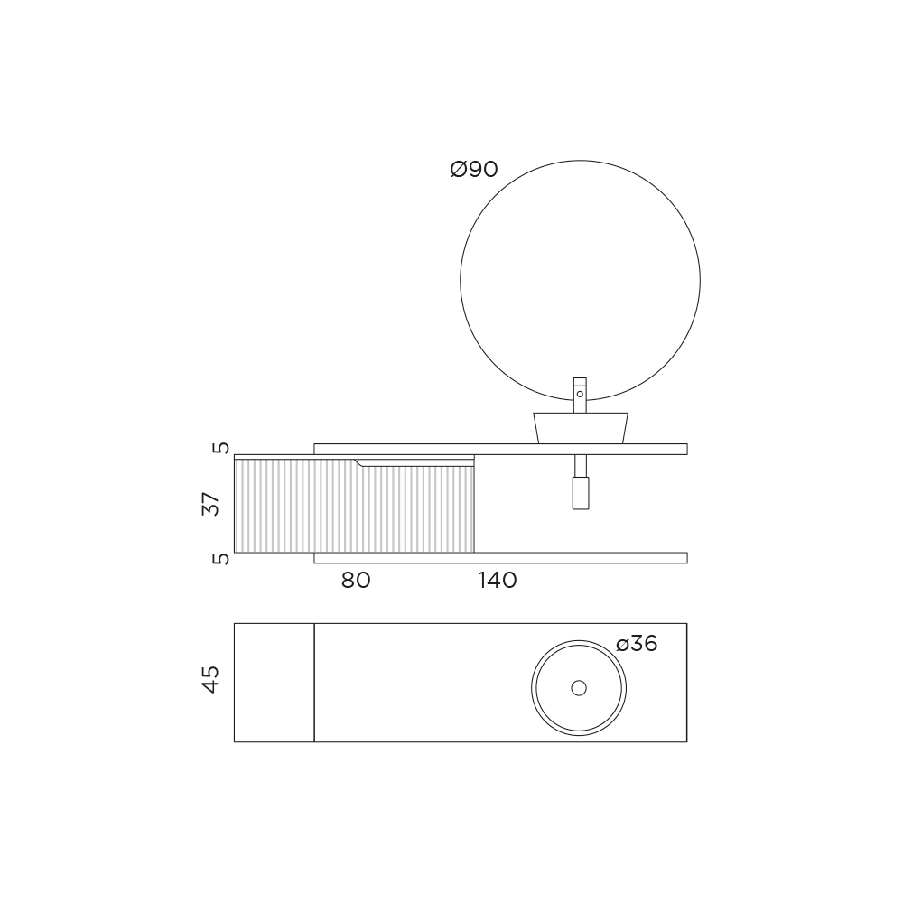 - Washbasin: Length 36 x Depth 36 x Height 12 cm