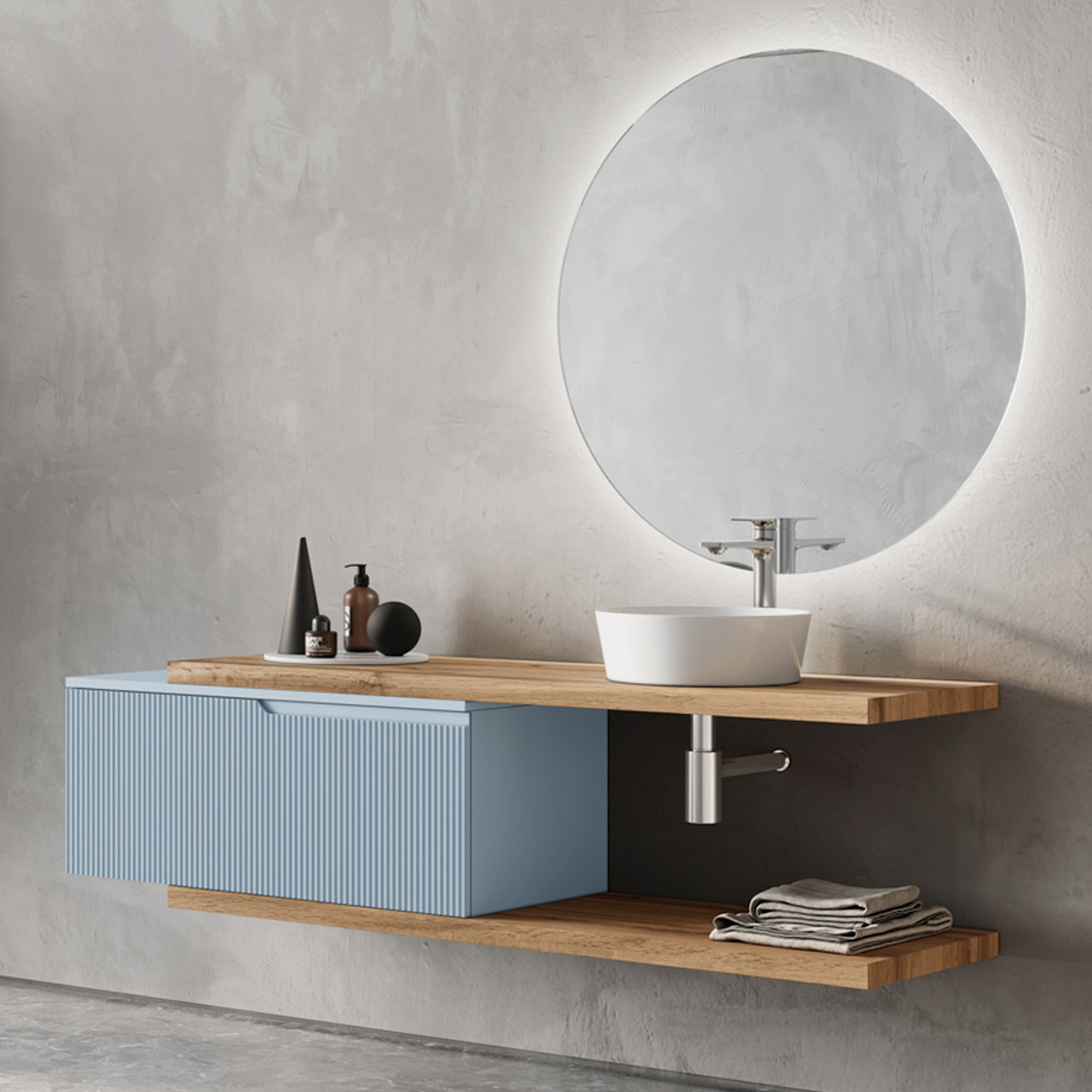 Bathroom composition in Tiffany blue MDF and ribbed oak Made in Italy