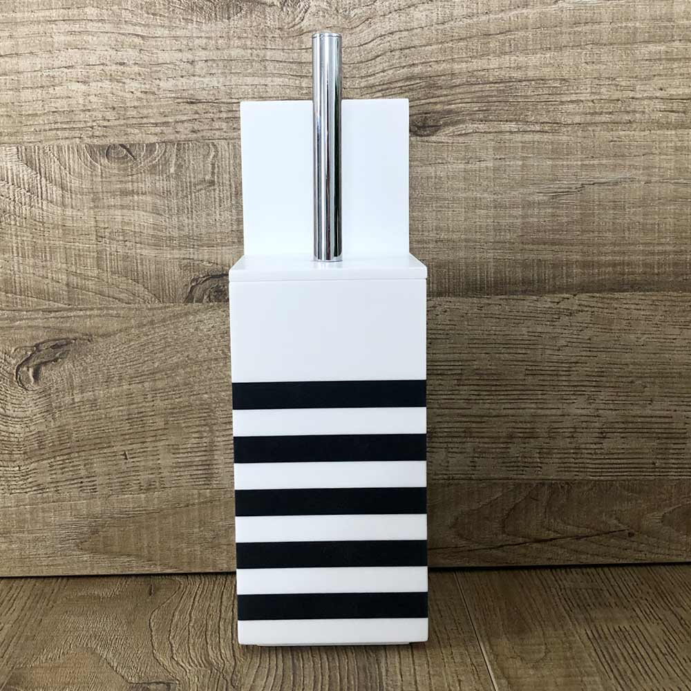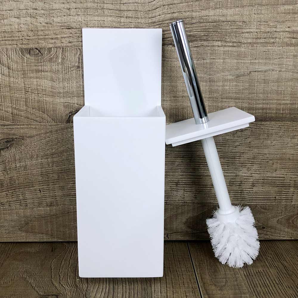 Toilet brush holder in white corian or with black design insert, high quality made in Italy.