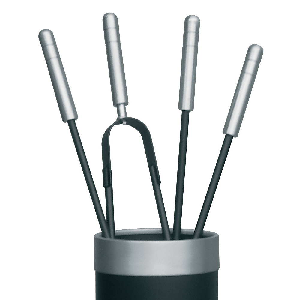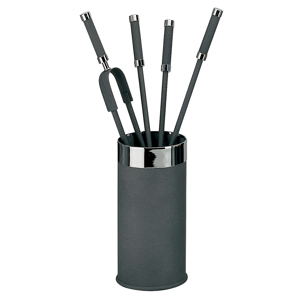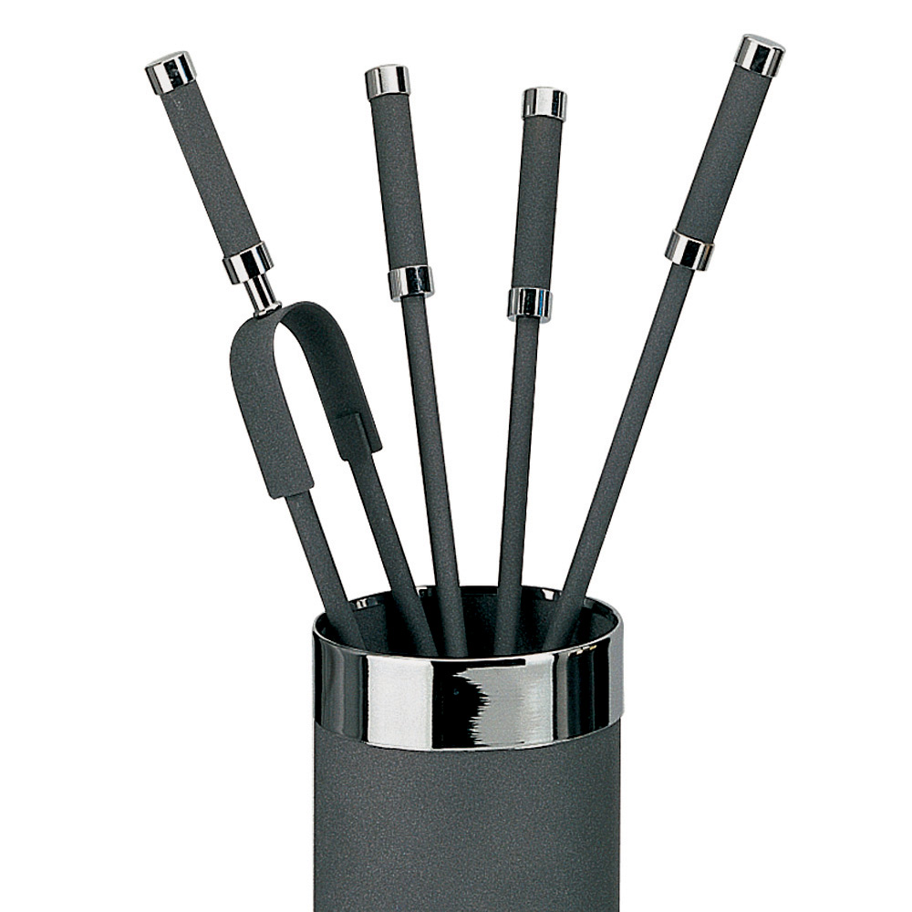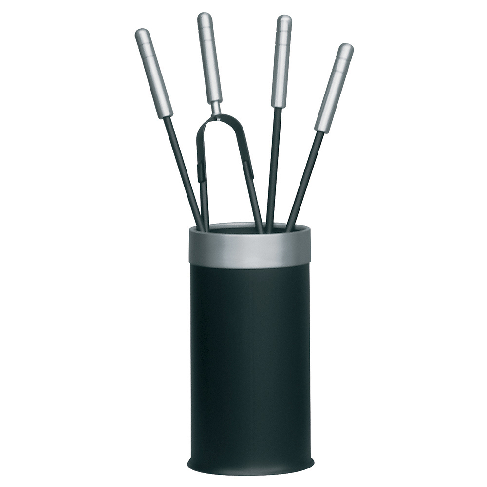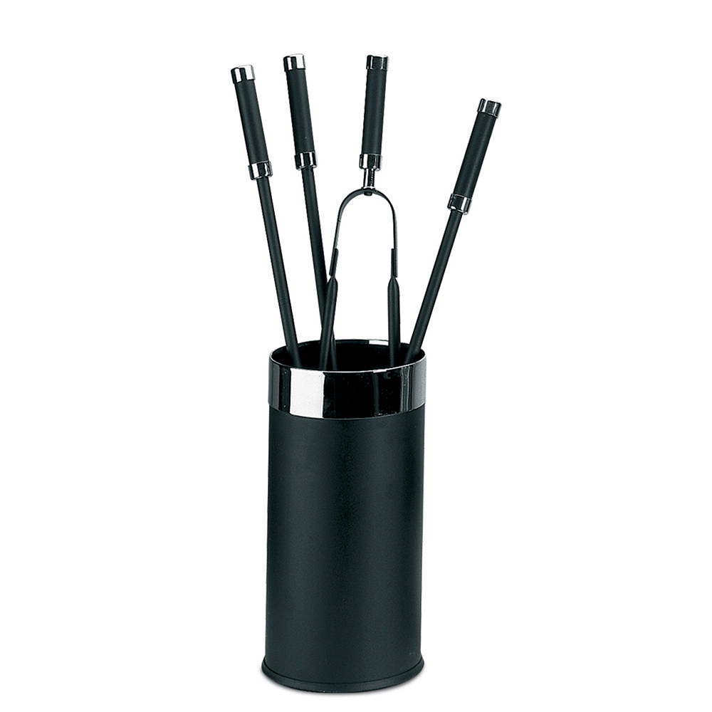 This fireplace tool holder, with its cylindrical silhouette and available finishes, is the quintessence of functional elegance . The body of the container creates a sophisticated contrast with the top edge, making it a designer piece that will attract attention in any living space. Inside, the tools necessary for fireplace care are made in harmony with the container, and designed to offer functionality and resistance.