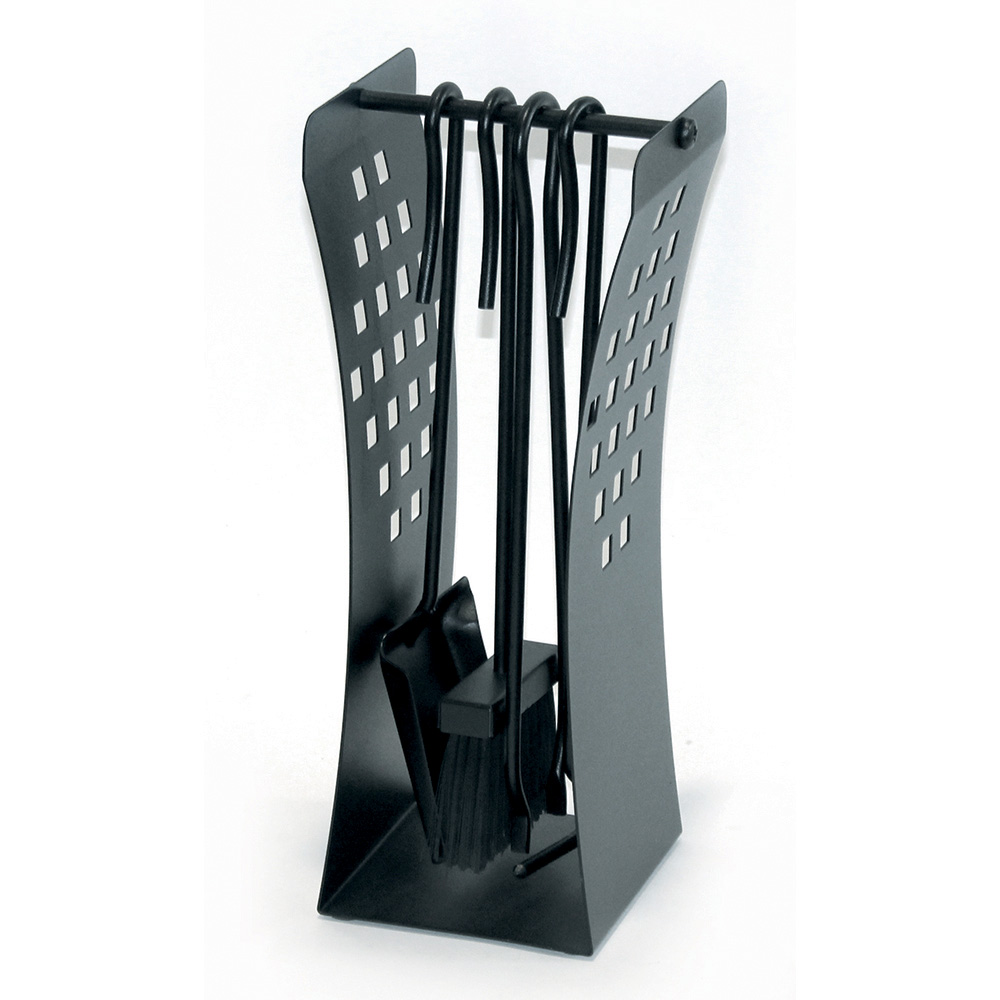 This fireplace tool set with metal stand is the ultimate accessory for anyone who wants to combine aesthetics and practicality . Its geometric design, enriched by square cuts that play with shadow and light, is not only a distinctive decorative element but also allows easy access and organization of tools.
