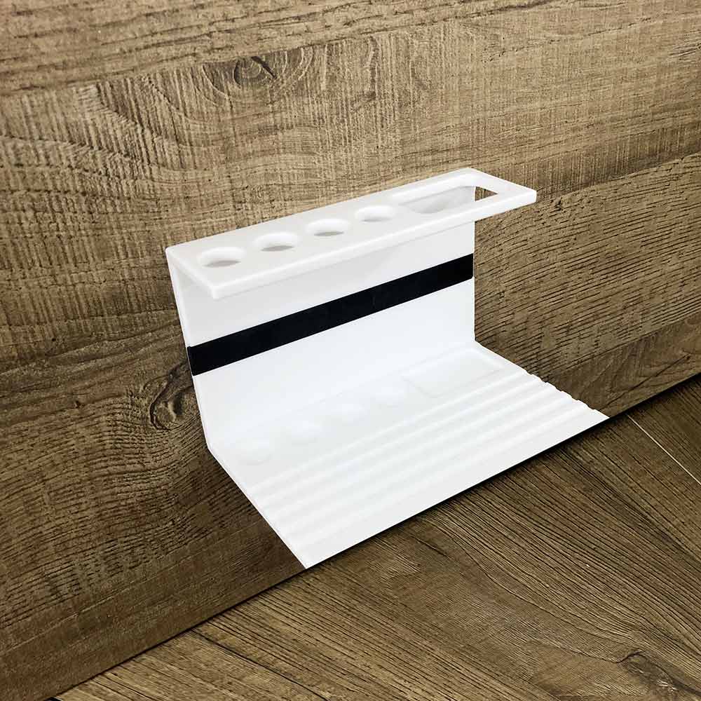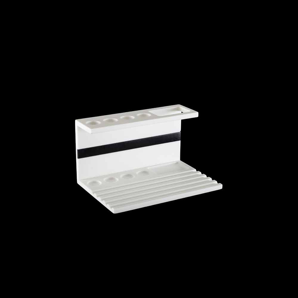 Toothbrush holder for the bathroom in white or white corian with black insert of high quality made in Italy.