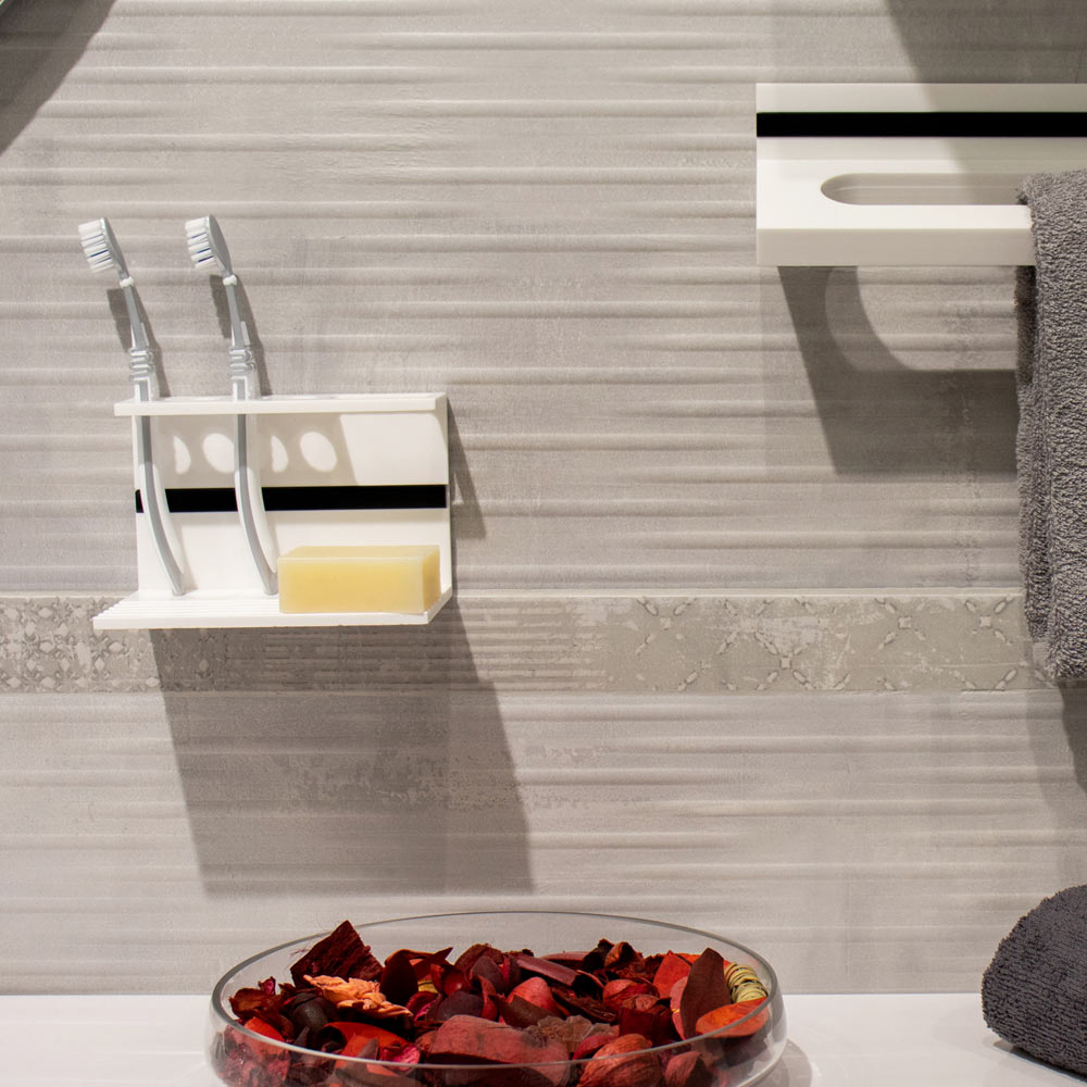 Choose this toothbrush holder , toothpaste and soap 6 mm thick as a bathroom accessory for a modern and luxurious atmosphere entirely made of Corian, a hygienic material with essential queues.