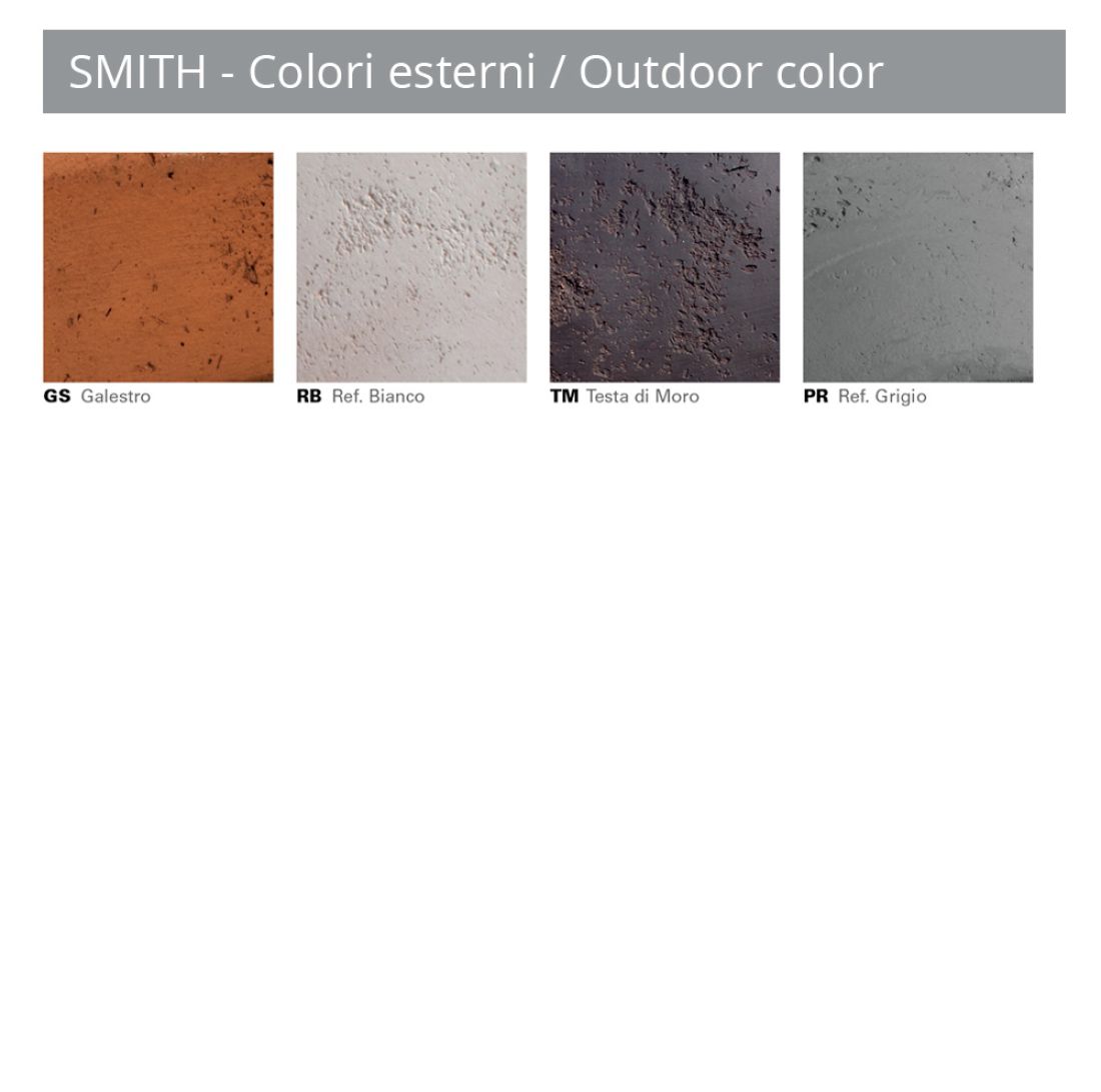 Smith is a LED wall light with a square, simple and stylized shape. As the most common of English surnames, Smith is the most common form of lamp on the market. The Smith series includes LED wall lights suitable for any environment. Made entirely by hand in terracotta, it is a unique and robust wall light, for classic or rustic exteriors, to illuminate porches, avenues or passage areas, characterized by a minimal design. Its finish is done with specific colours for the exterior and its diffuser is in pmma (polymethylmethacrylate). Smith is a unique and original wall light, made entirely by hand according to the true Tuscan tradition. Its queues are current and modern, suitable for use in various environments. Lamp that goes from classic to modern. This small wall lamp with a simple shape creates an up-and-down play of light beams on the wall. Made with high quality materials, Smith is available in different LED light colour temperatures, choose the one that best suits you!