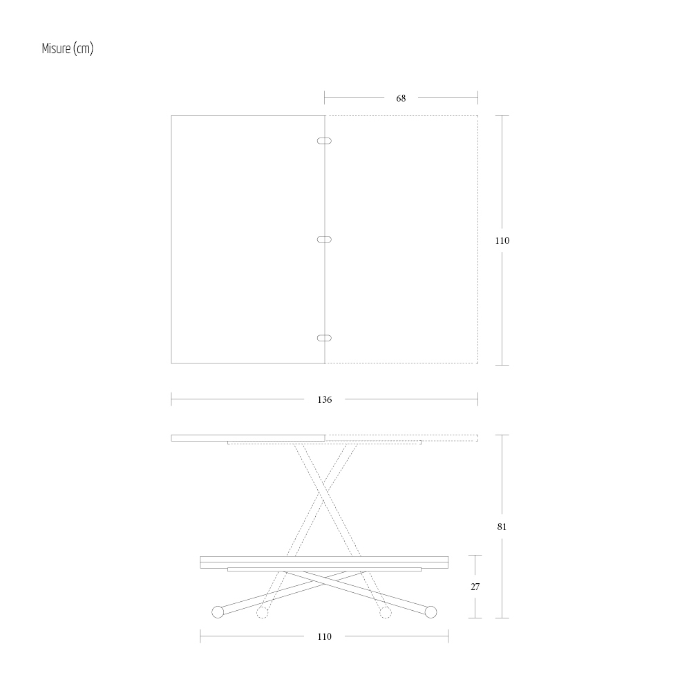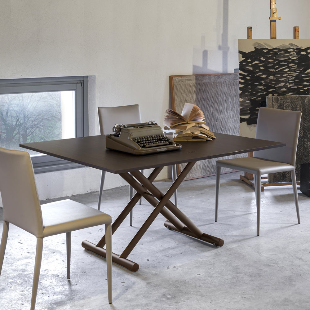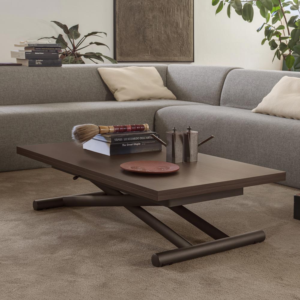 Convertible coffee table in laminated wood and metal Made in Italy.