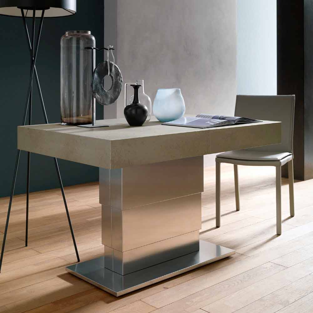 Coffee table convertible into a dining table with mortar effect top Made in Italy.