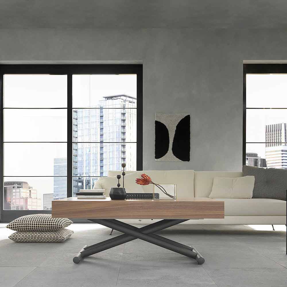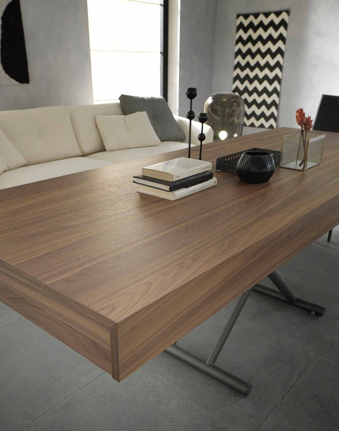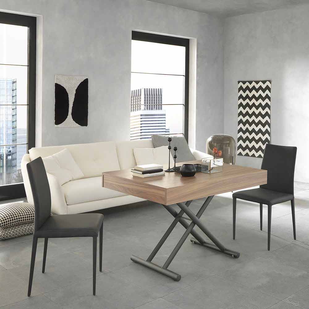 transformable coffee table is characterised by elegant and essential queues that accompany a versatile design suitable for furnishing any style of environment.