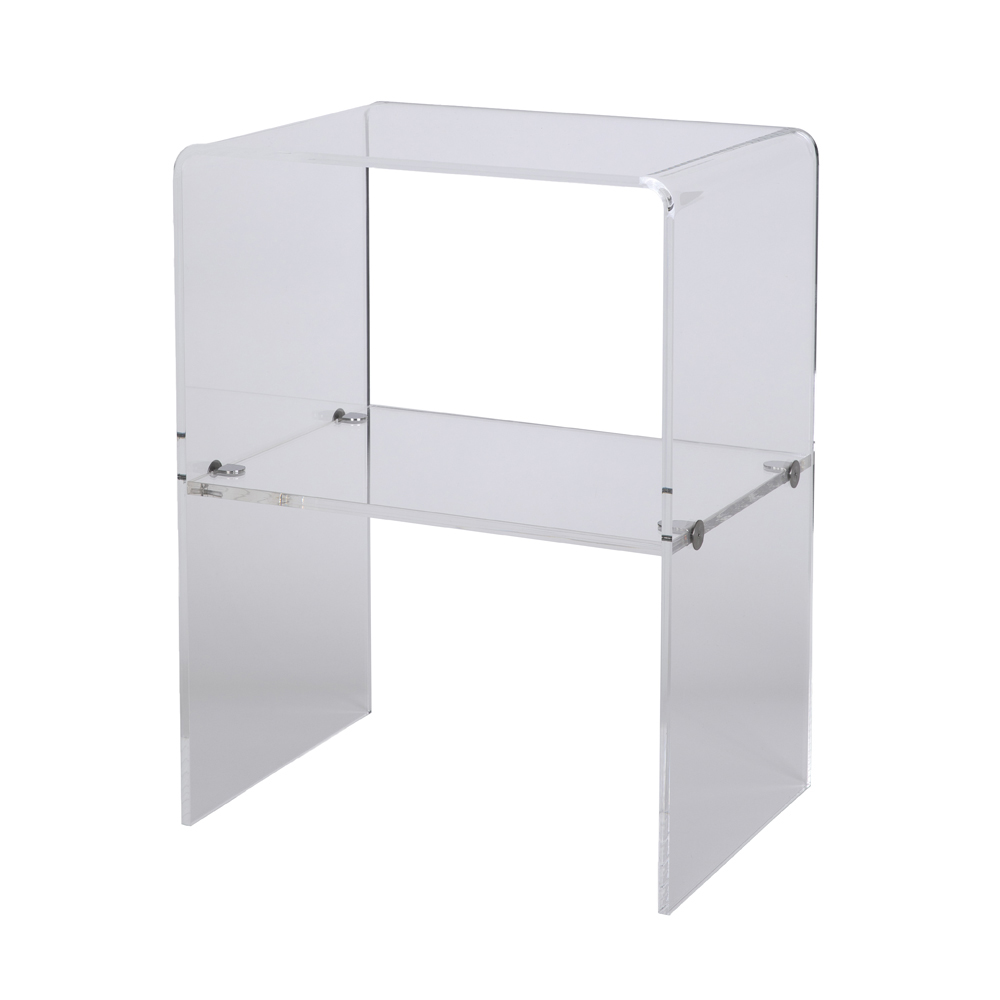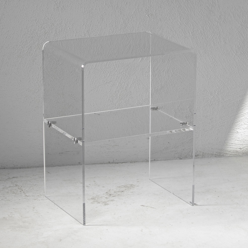 Bedside table in transparent acrylic crystal with shelf, made in Italy.