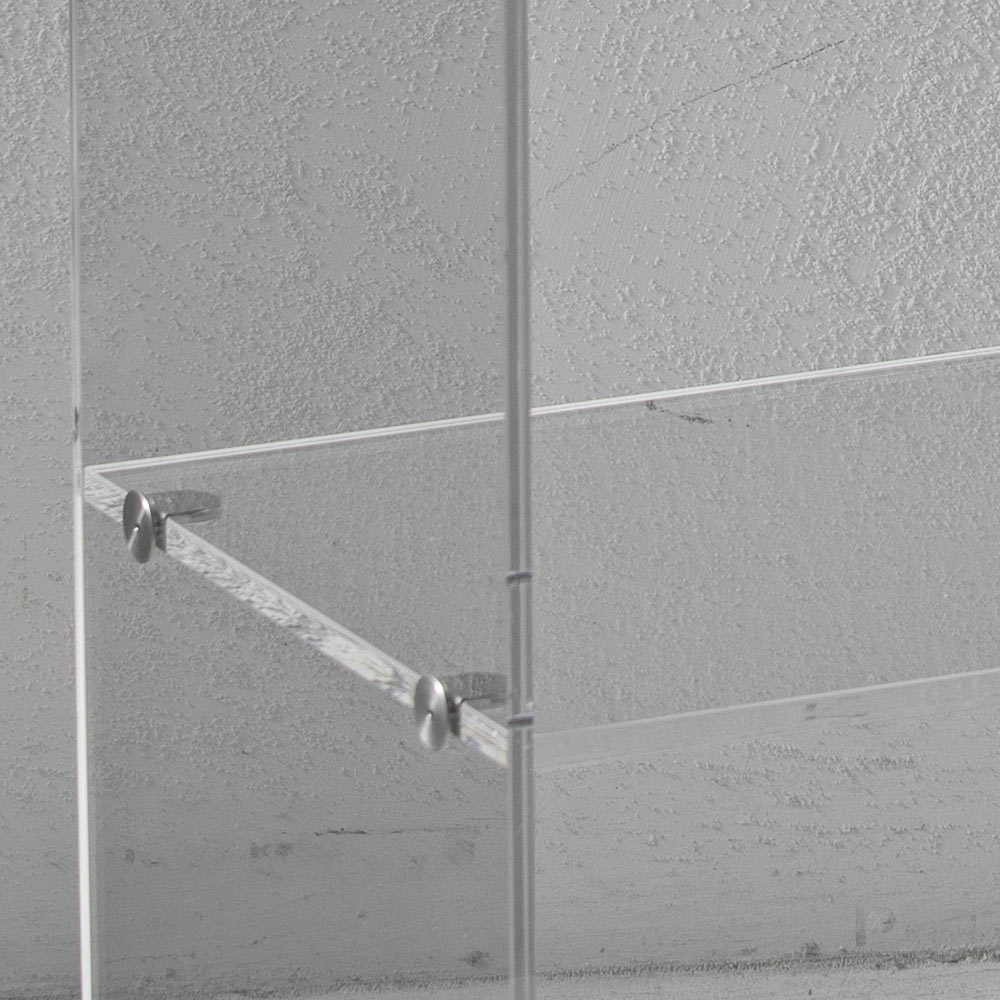 The important thickness of the structure (8mm) and of the shelf (10mm) enhances the brilliance of the material.