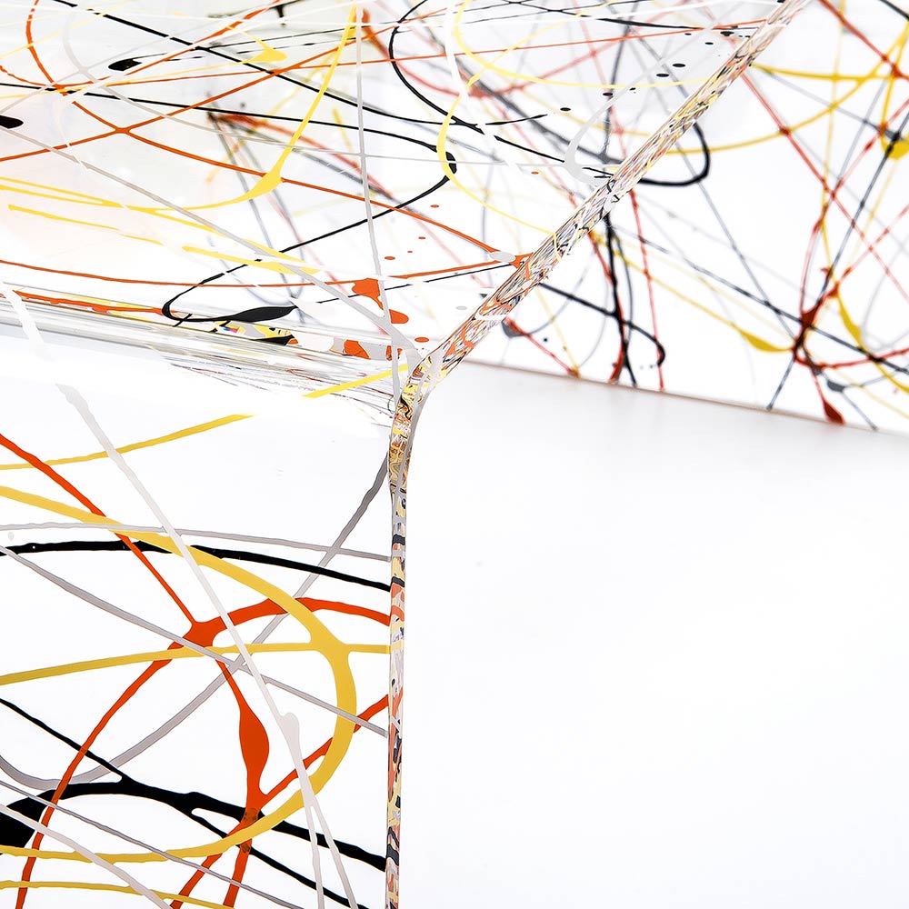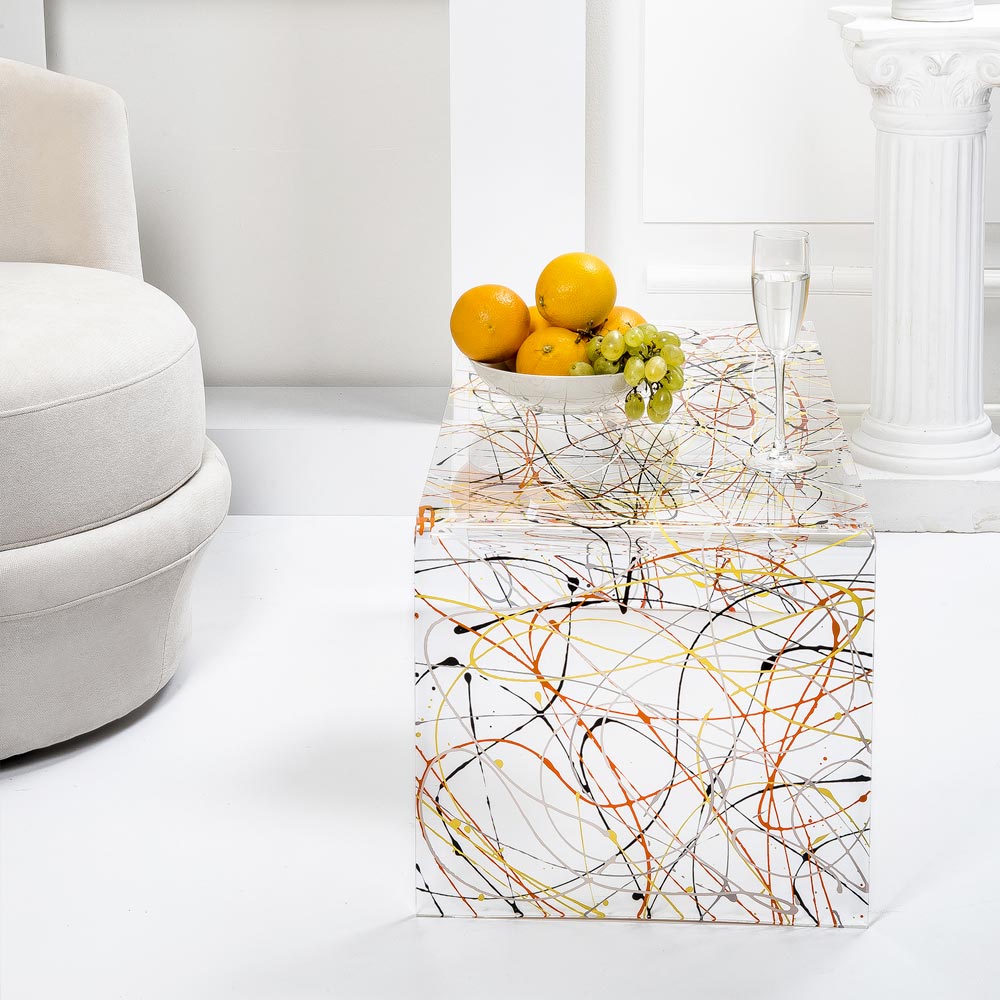 Coffee table conceived, designed and made in Italy through the use of innovative and quality materials such as transparent plexiglass with multicolor decorations which is ideal as it is non-toxic, hypoallergenic, odourless, antibacterial and 100% recyclable. This coffee table was designed to furnish the lounge or sleeping area with taste and functionality, acting as a modern, simple and versatile furnishing element .
