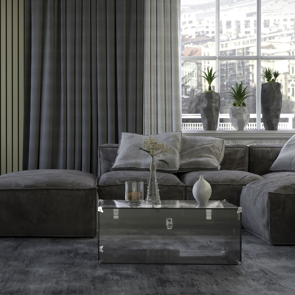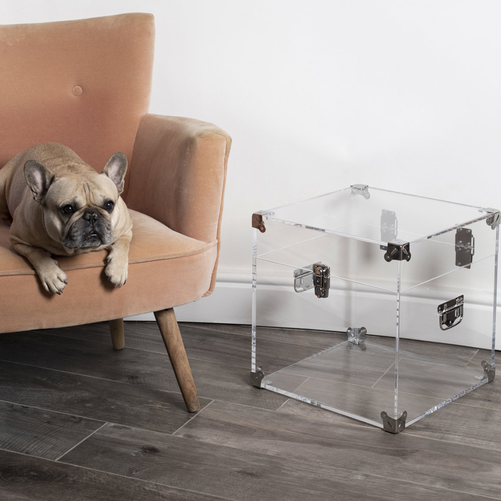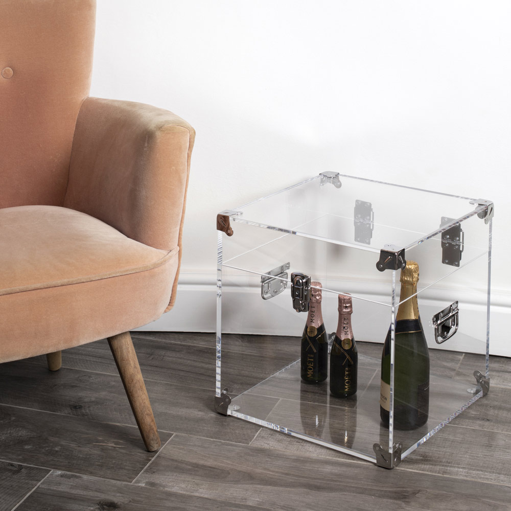 Trunk in transparent or smoked acrylic crystal and chromed finishes, 2 sizes made in Italy.