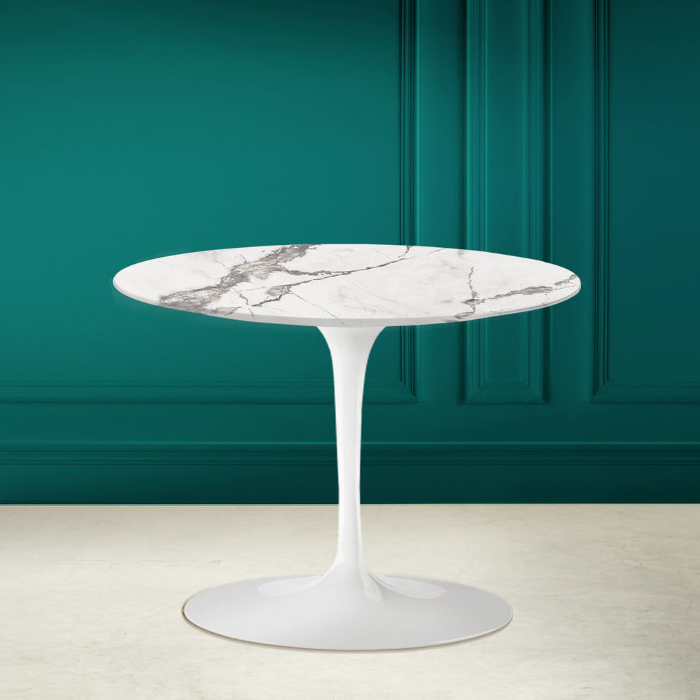 Round coffee table with invisible select ceramic top and polished aluminium base Made in Italy