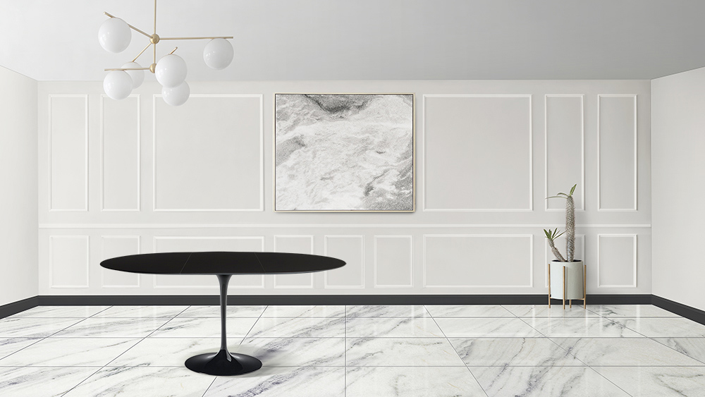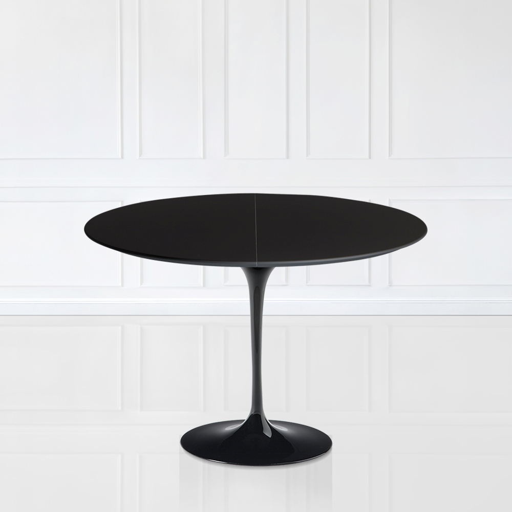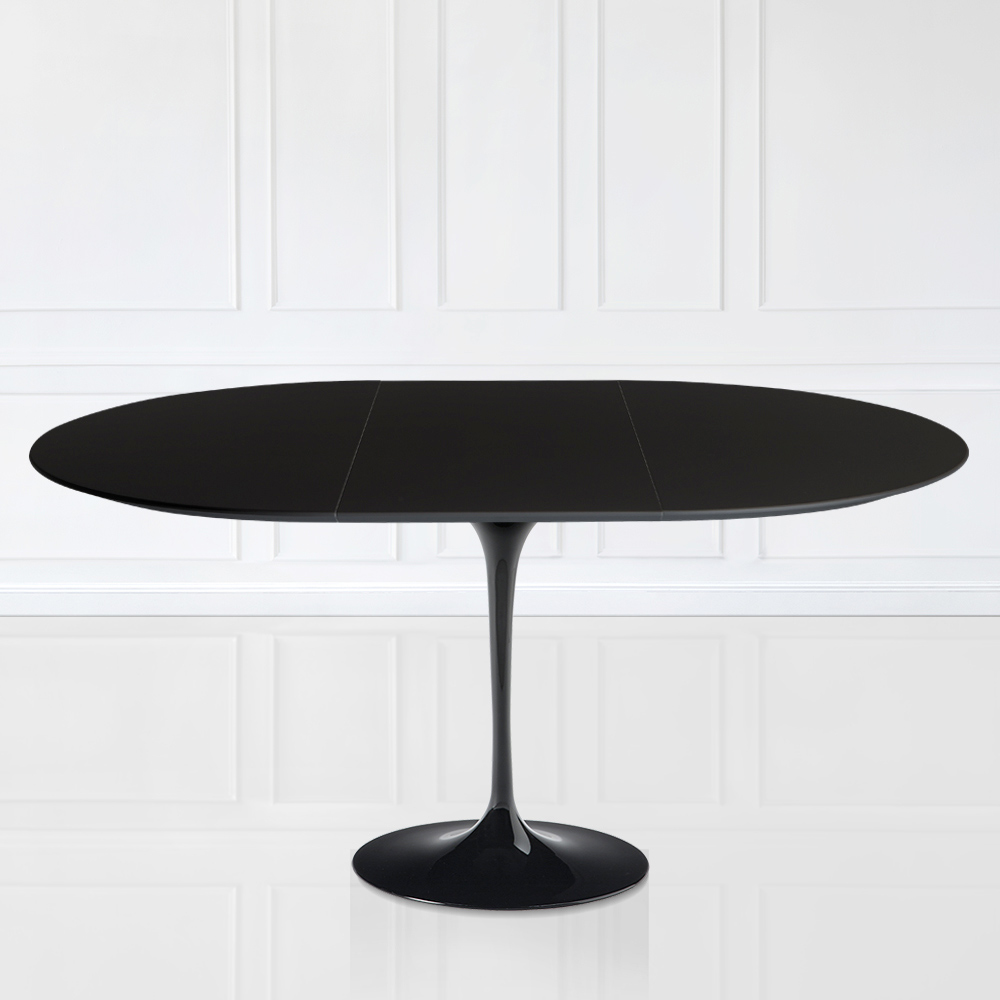 Extendable dining table to 187 cm with black liquid laminate top and black polished aluminum base entirely Made in Italy . This piece of furniture responds to the needs of functionality and adaptability of any living and kitchen environment. Refined and with simple queues, it can be inserted into all furnishings to better complete each room. The possibility of being extended makes it a unique element that responds to the need to have more diners, thanks also to the shape of the base that favours the insertion of many chairs. This table is the perfect idea to have something original and elegant but at the same time useful for all occasions and events.