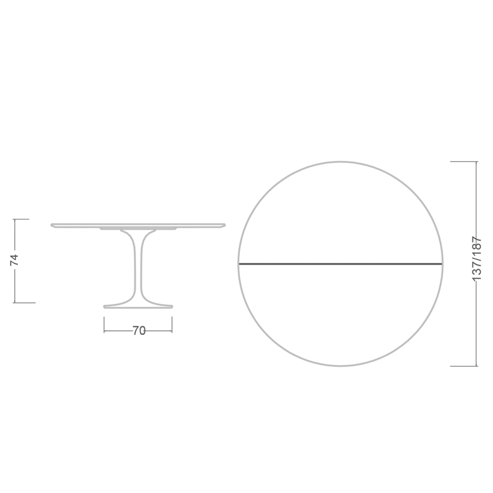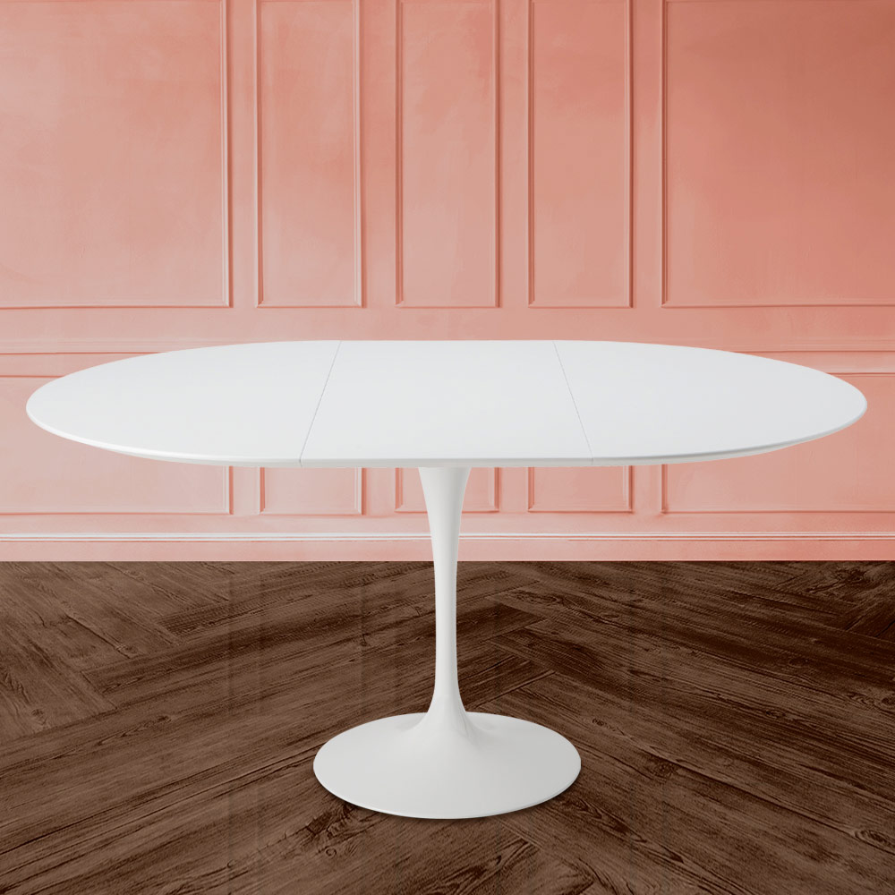 Extendable dining table to 187 cm with white liquid laminate top and white polished aluminum base entirely Made in Italy . This piece of furniture responds to the needs of functionality and adaptability of any living and kitchen environment. Refined and with simple queues, it can be inserted into all furnishings to better complete each room. The possibility of being extended makes it a unique element that responds to the need to have more diners, thanks also to the shape of the base that favours the insertion of many chairs. This table is the perfect idea to have something original and elegant but at the same time useful for all occasions and events.