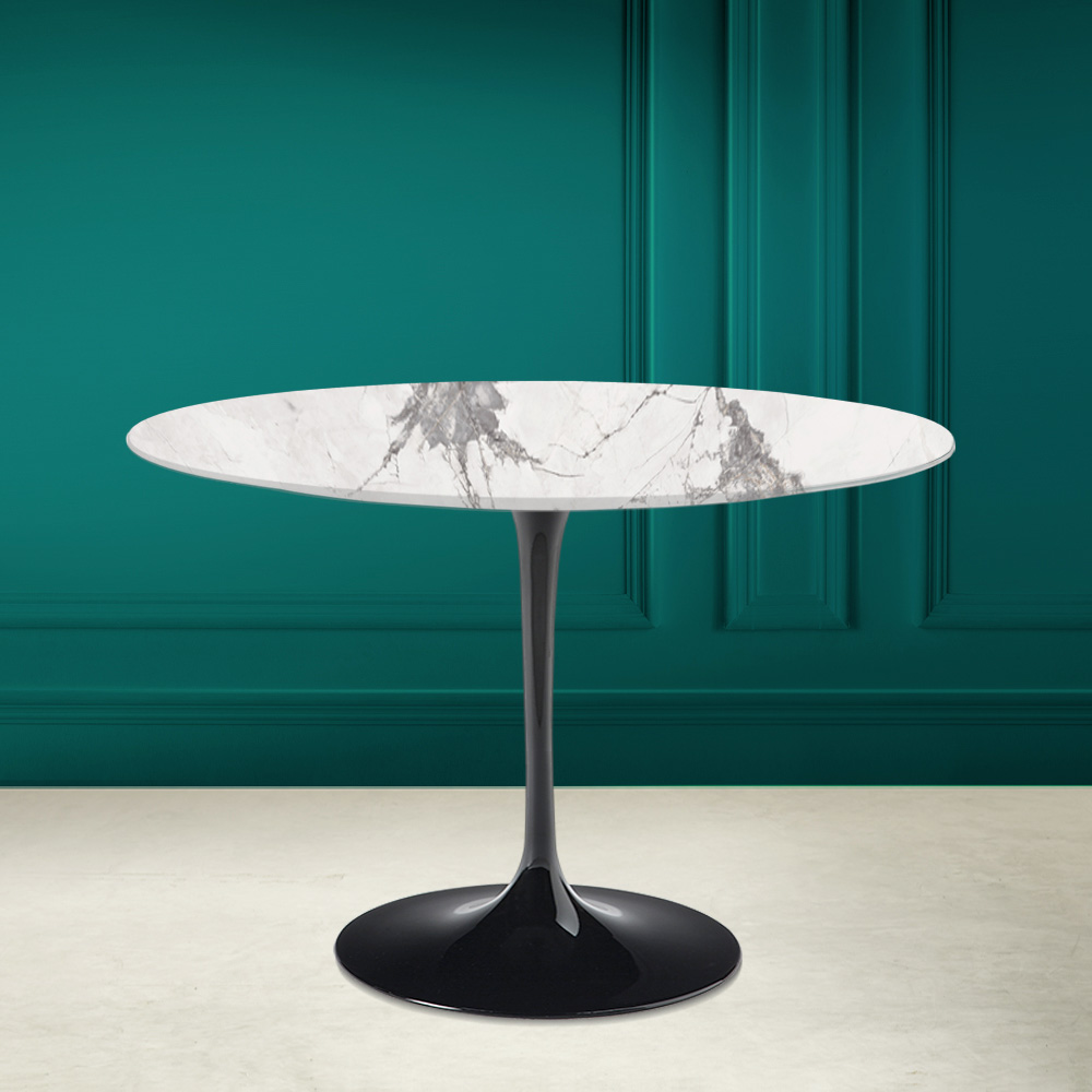 modern and lively veining that gives the table an original and refined touch and the polished aluminium of the base provides