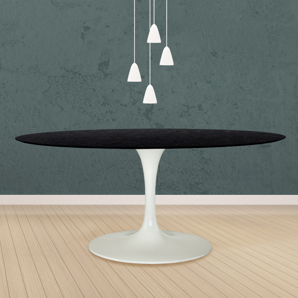 Oval dining table in black stained oak and polished aluminium base Made in Italy