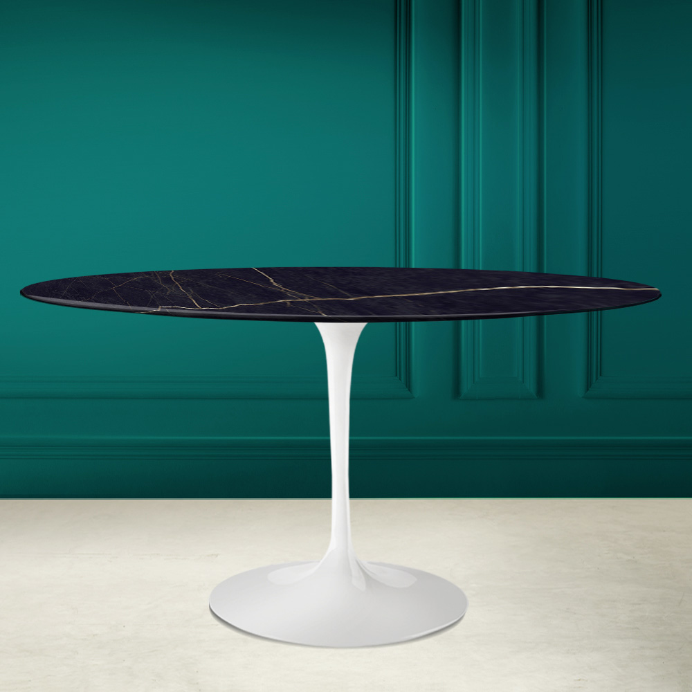 polished aluminium base. This table is the perfect element to give an original touch to any lounge and kitchen thanks to the oval shape and noir laurent ceramic. The