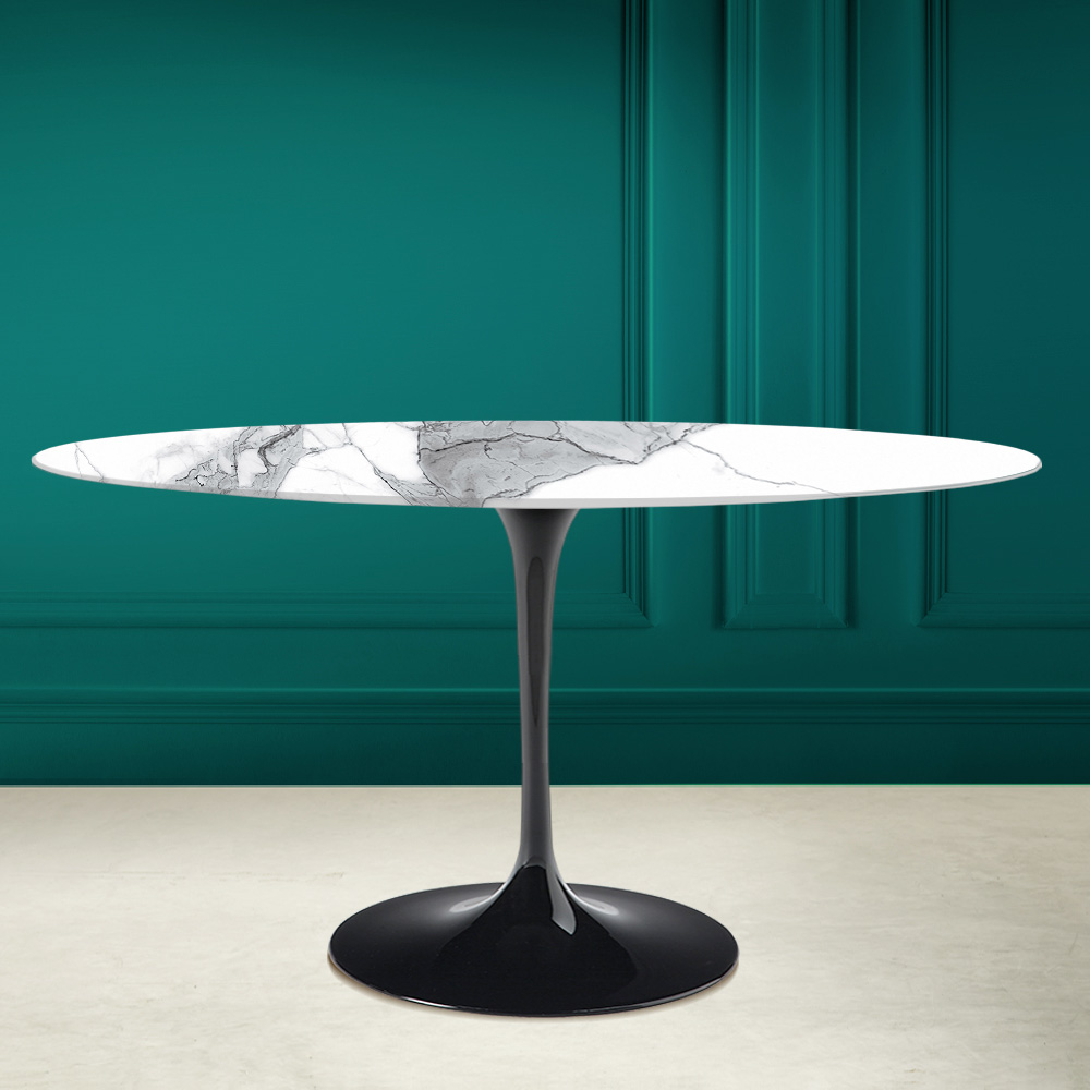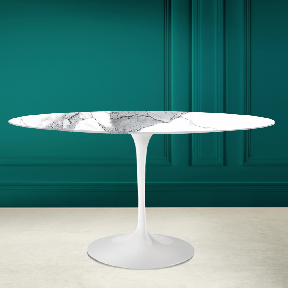Made in Italy. This table has two characteristics that make it unique in its kind: the oval shape and the statuario altissimo ceramic.