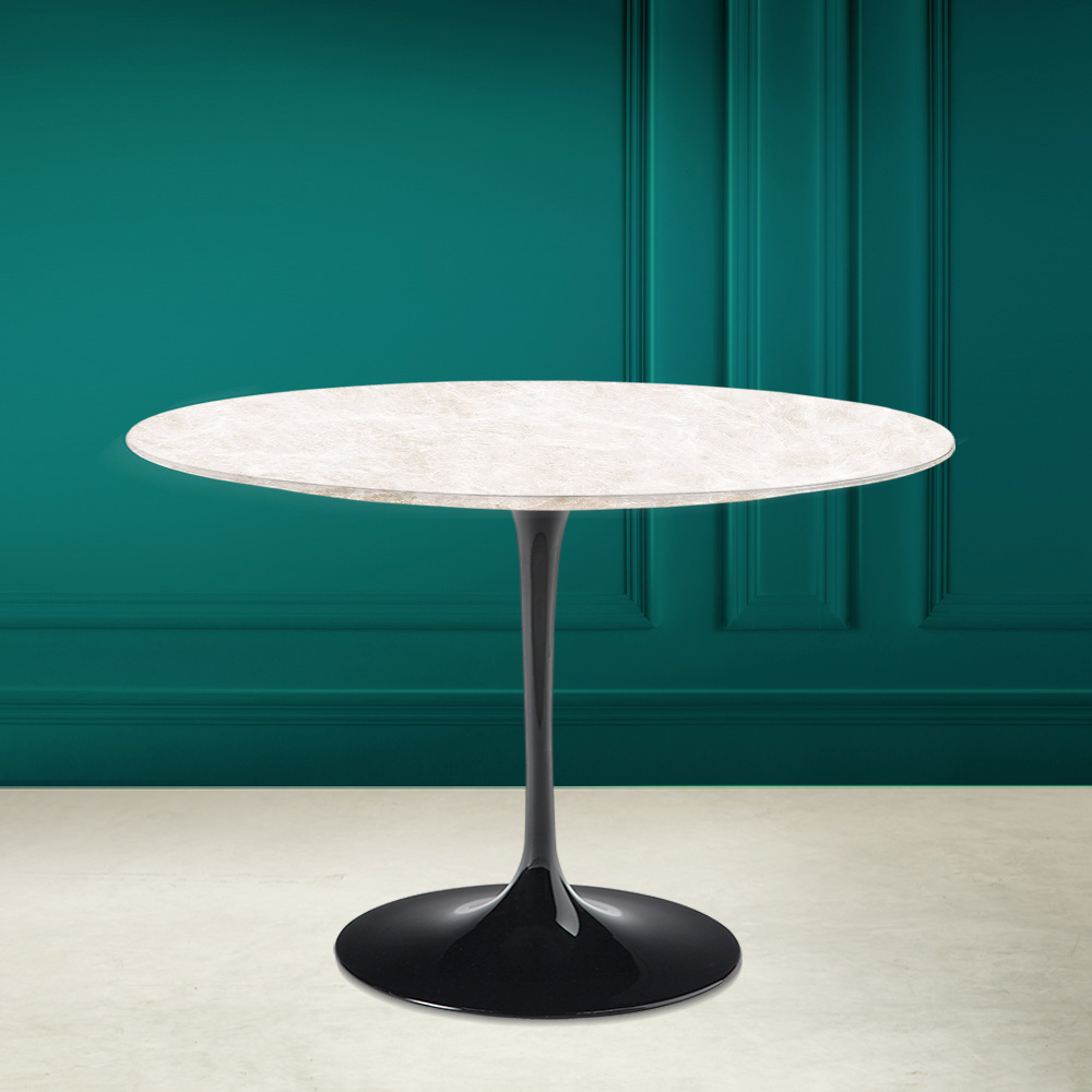 Dining table with round top in diamond cream ceramic Made in Italy