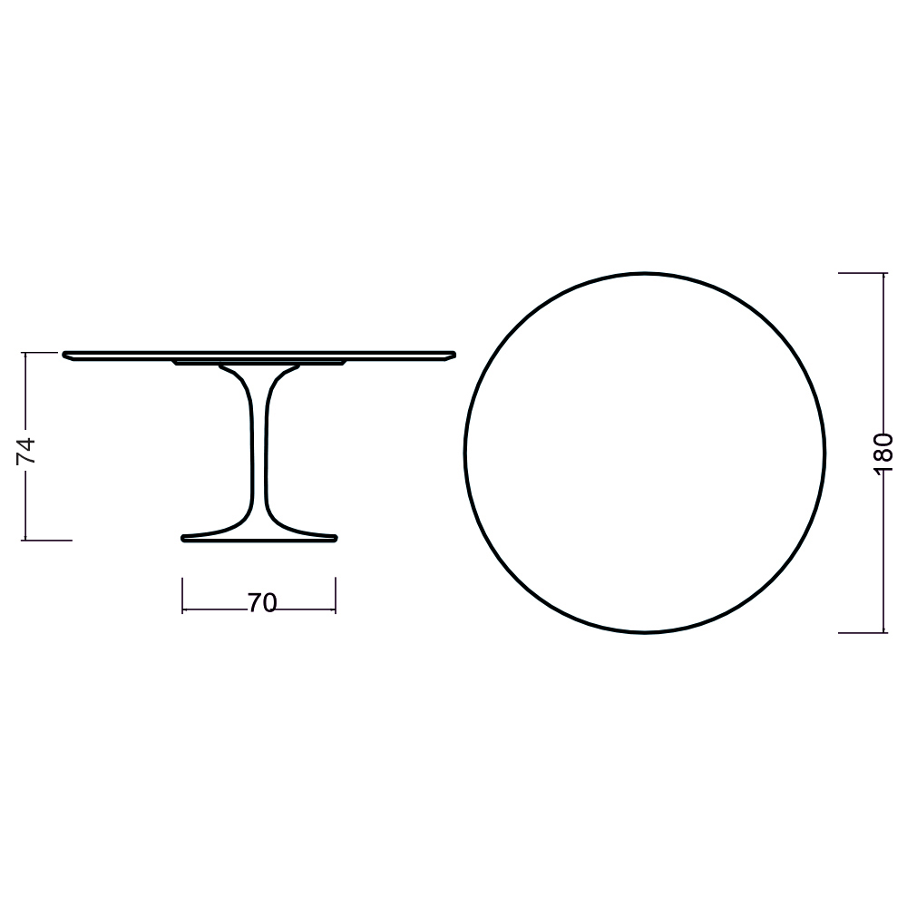 - Table top diameter 180 x height 74 cm / Base diameter 70 cm