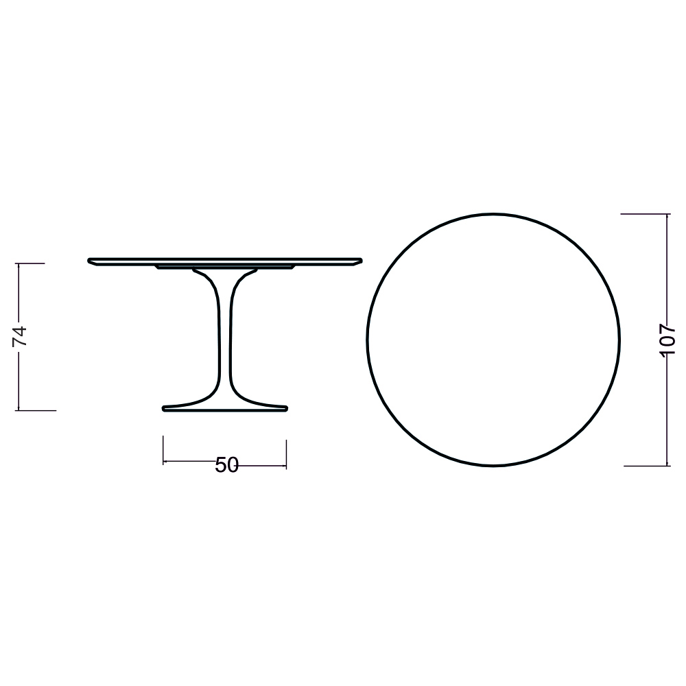 - Table top diameter 107 x height 74 cm / Base diameter 50 cm