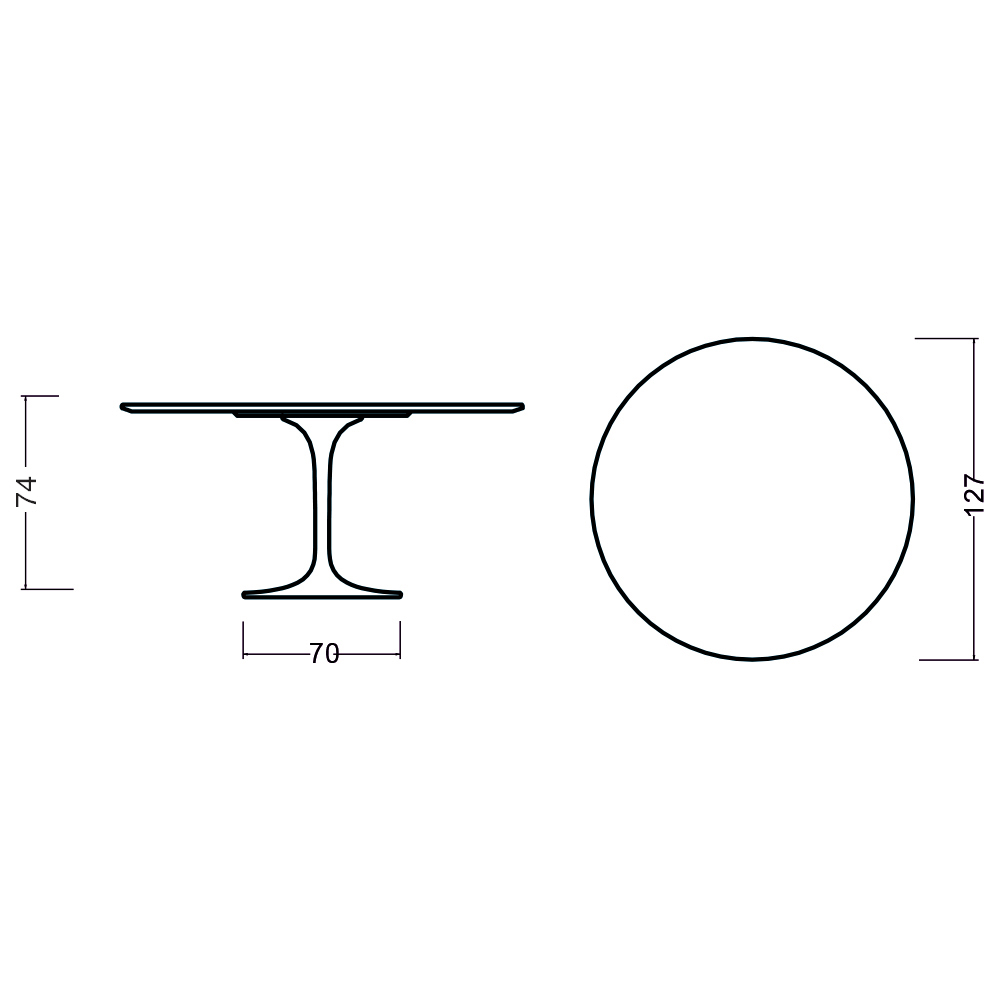 - Table top diameter 127 x height 74 cm / Base diameter 70 cm