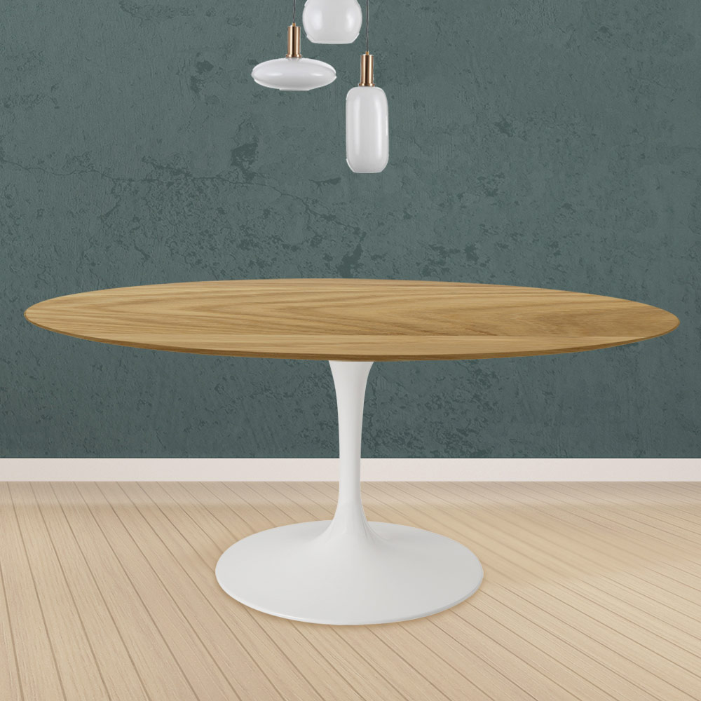 linear and elegant finishes. The union between the natural oak of the top and the polished aluminium of the base guarantees