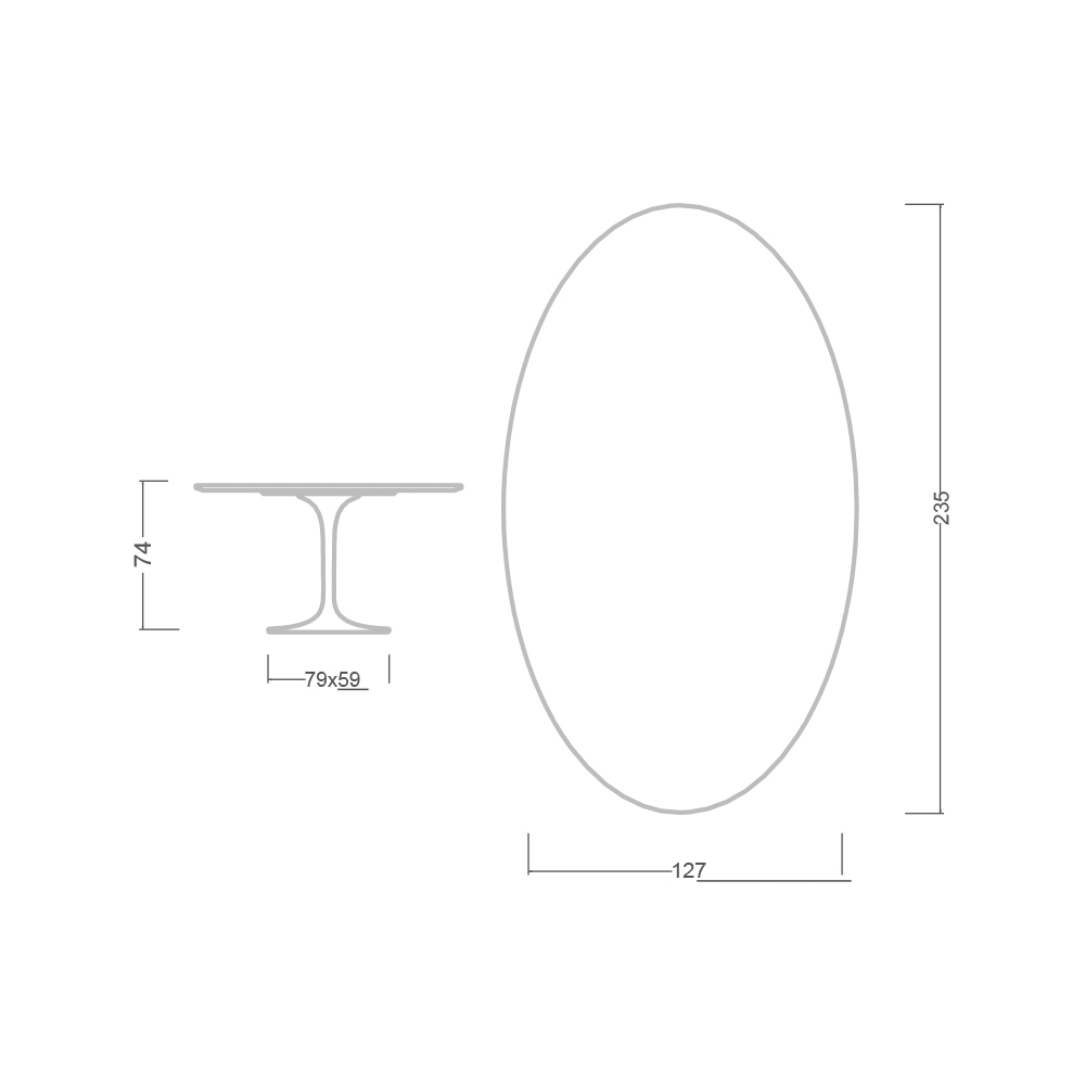 - Top: 235 x 127 - Base: 79 x 59 - Height 74 cm;