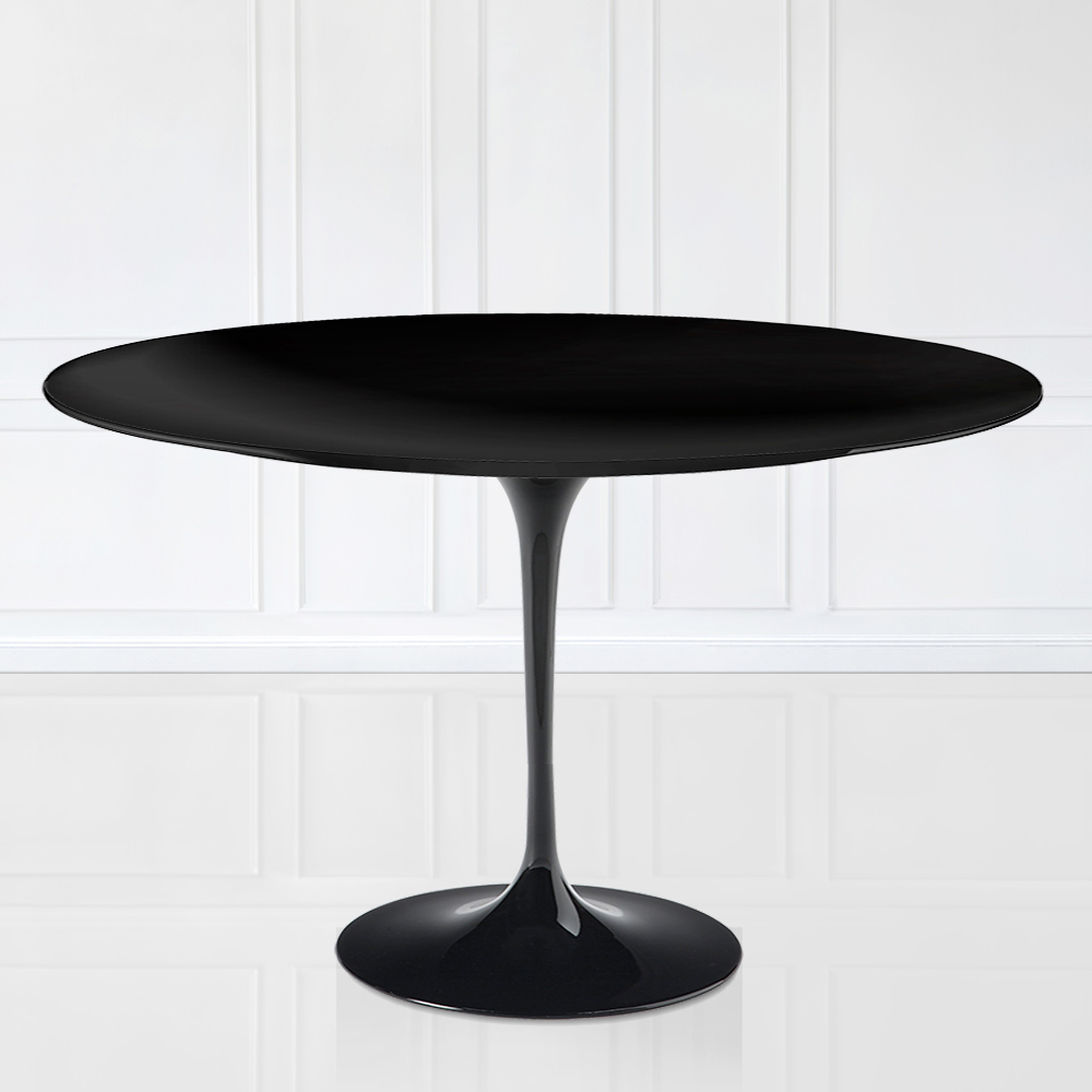 Oval dining table completely made in Italy with black liquid laminate top and black polished aluminum base. The characteristic oval shape gives the table a particular and refined but at the same time functional touch that allows it to perfectly match any style of furniture. This piece of furniture is excellent to be placed in a pleasant and serene environment such as the kitchen and any living area as it has simple and linear finishes that make it unique in its kind. The liquid laminate top and the polished aluminium base provide quality and resistance over time making the table right for every occasion of use. Originality and design come together to give life to a completely innovative and exclusive furnishing solution capable of characterizing every room in the house thanks to its strong modern and creative personality .