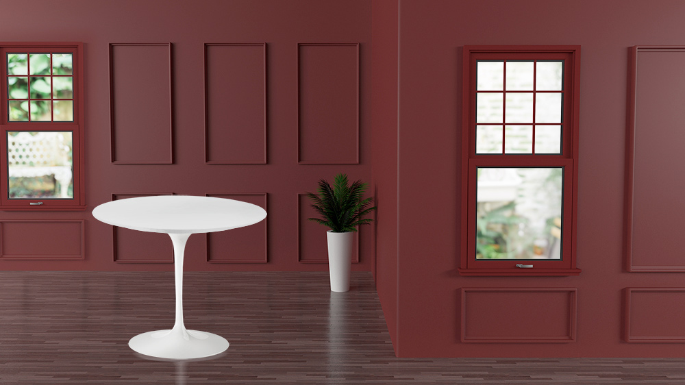 Dining table with round top in white liquid laminate and base in white polished aluminum entirely made in Italy . It is essential to carefully choose a dining table as it is placed in the warmest and most welcoming place in the house and must create a perfect blend with the surrounding environment: the versatility of this table allows you to do it anywhere. The seductive and refined design of this element allows you to furnish with taste and refinement any kind of lounge and kitchen thanks to the round shape which gives a touch of originality to the room providing freshness and linearity to the style . The liquid laminate top and the polished aluminium base make the table suitable and functional for any occasion of use and is ideal for completing with sobriety any room thanks to the simple and essential finishes .