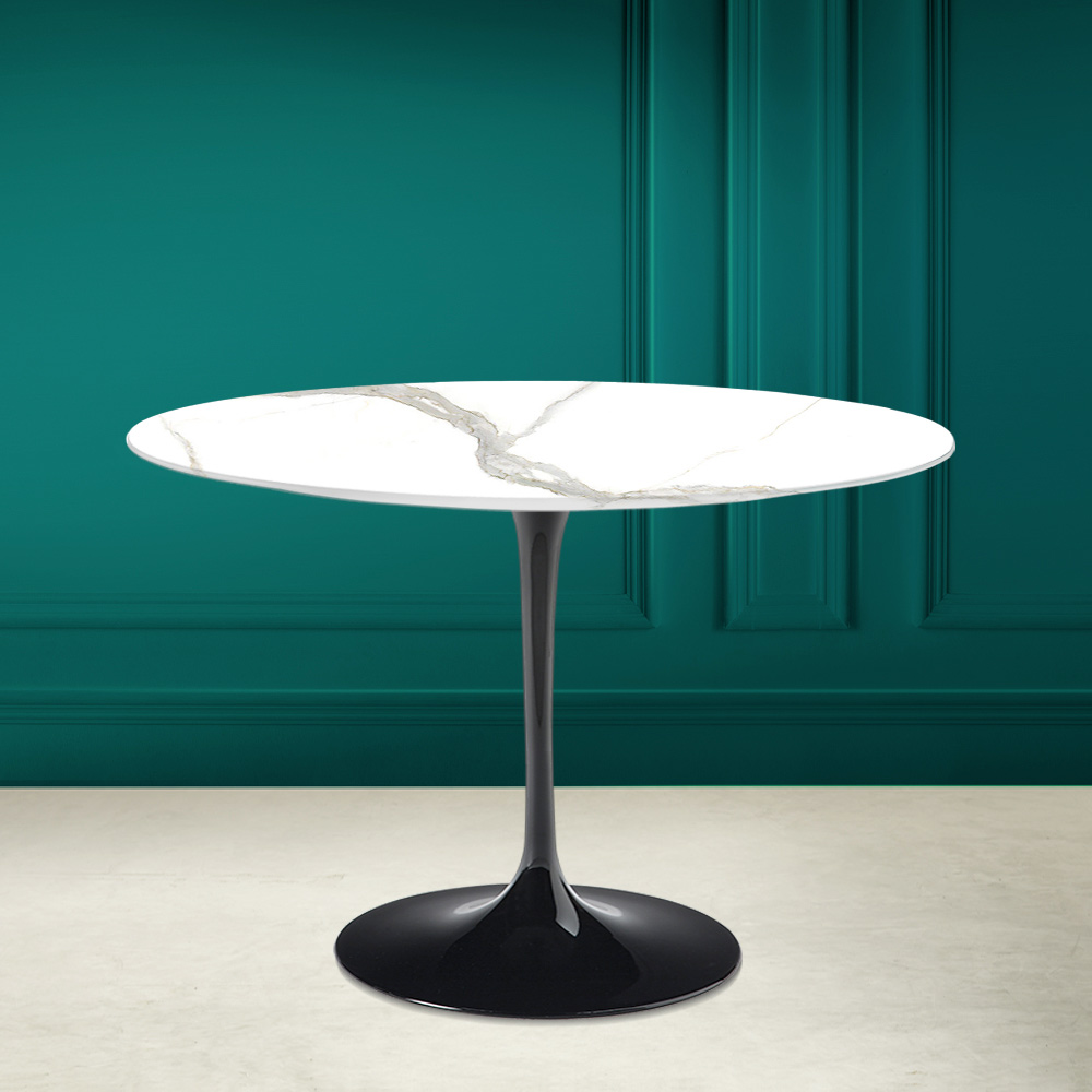 Dining table with round top in calacatta michelangelo ceramic Made in Italy