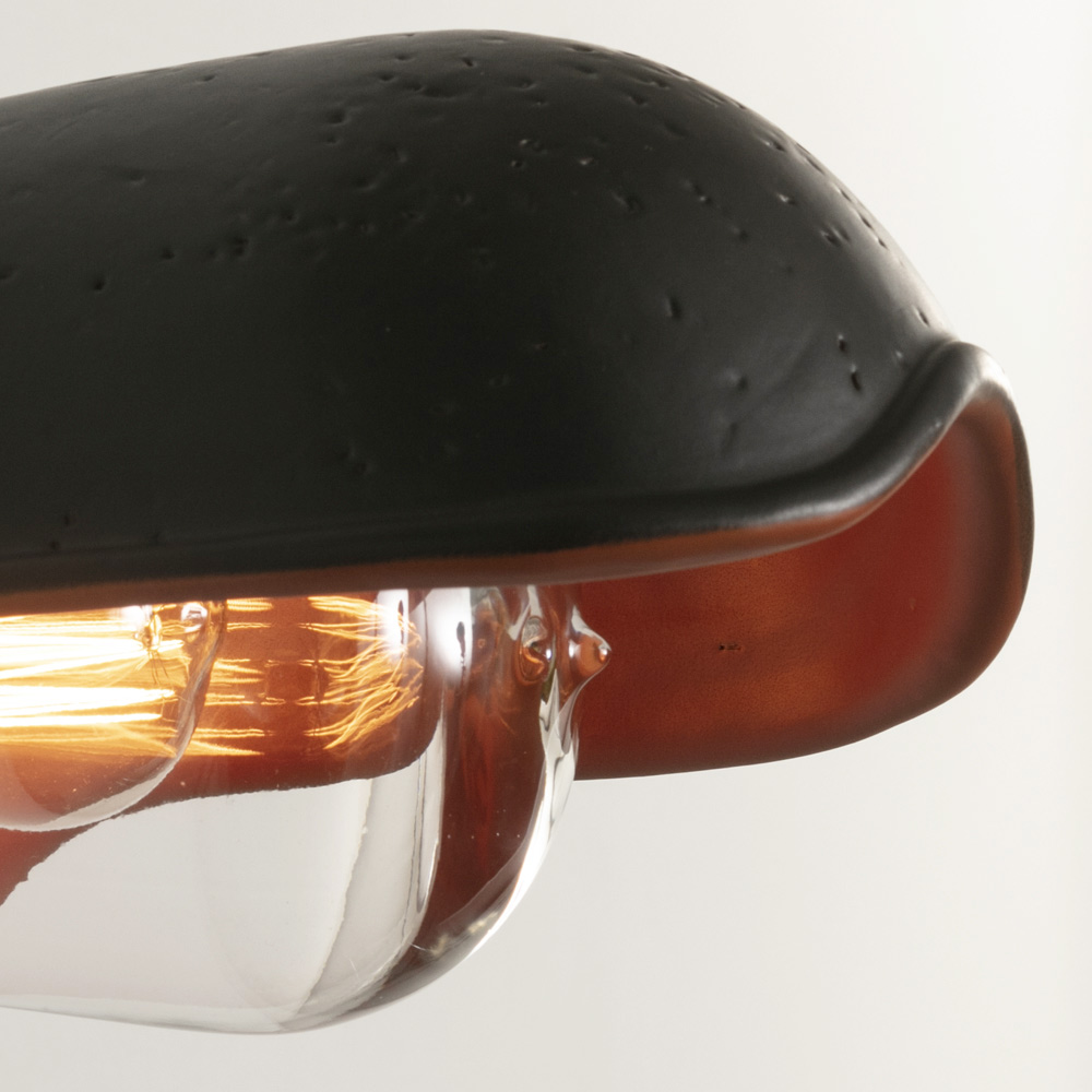 Handcrafted outdoor wall lamp in Tuscan majolica and blown glass Made in Italy.