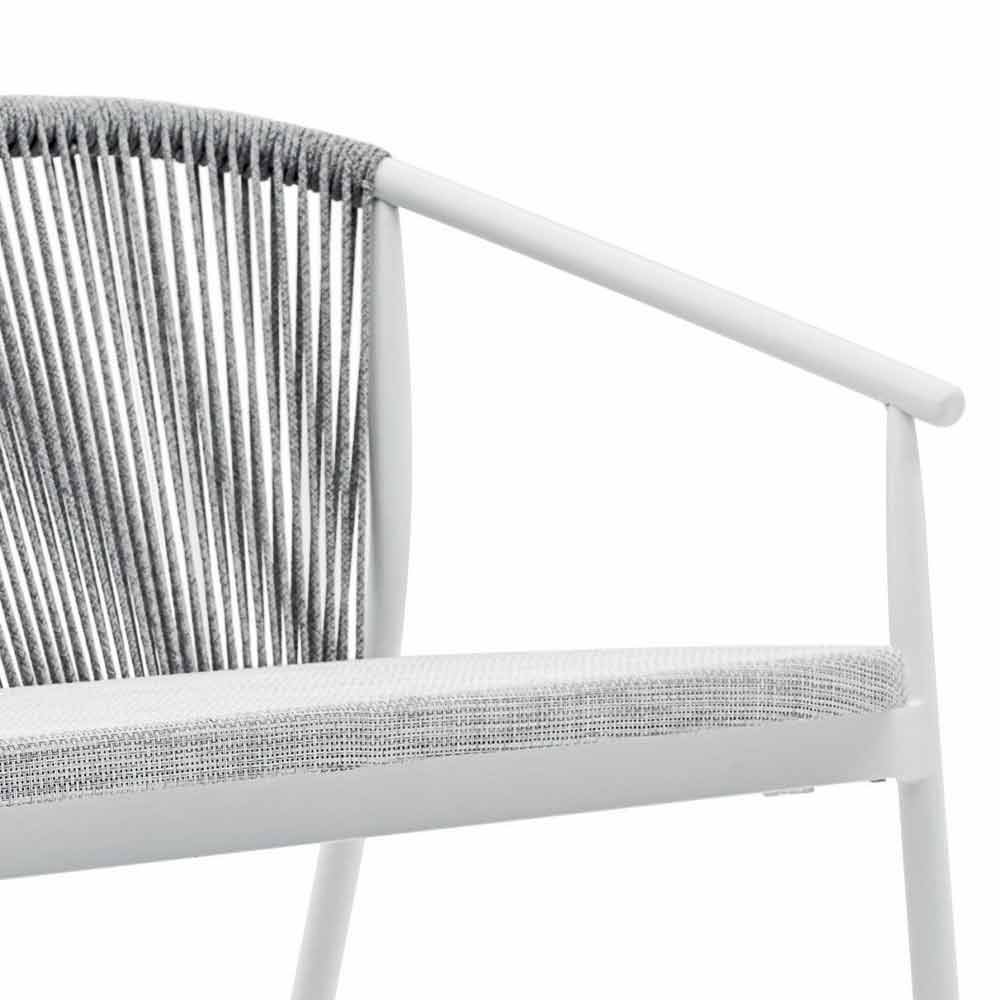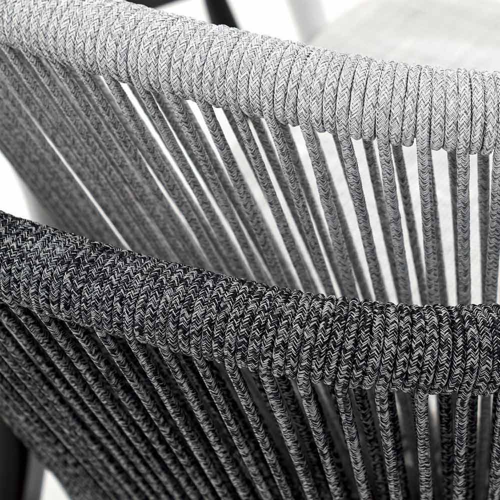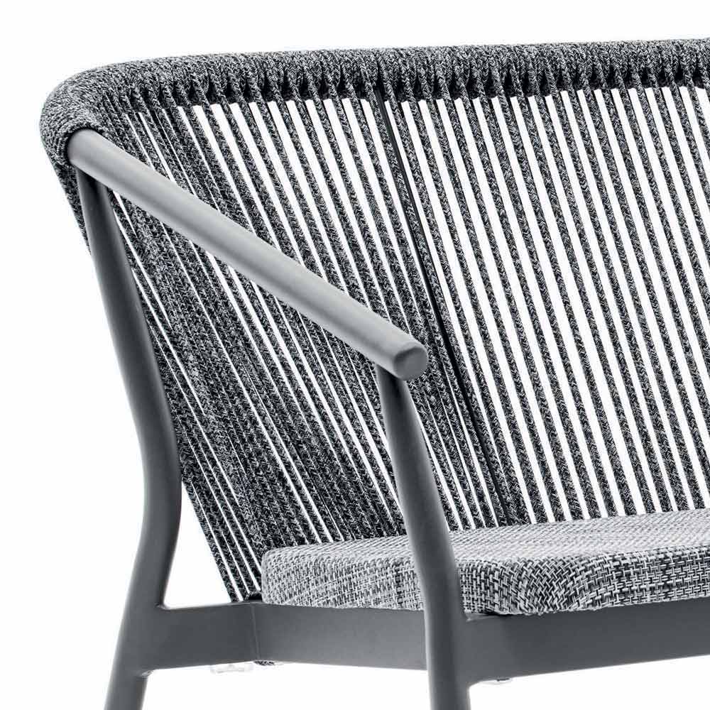The intertwining of the backrest in VAR # TEX synthetic cord enhances the aesthetics of this sofa designed to enjoy outdoor days in company.