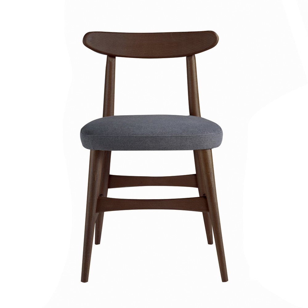 Dining room chair with solid ash wood structure with canaletto finish, backrest in solid birch wood and upholstered seat e covered in ash-colored fabric , entirely made in Italy. This furnishing solution is the result of simple but quality materials that make this piece of furniture stable and resistant over time and help to create a perfect product for any environment.