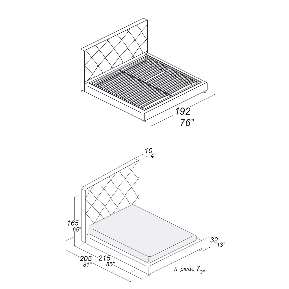 - length: 192 cm x depth: 215 cm x height: 165 cm - suitable for a 180x200 cm mattress