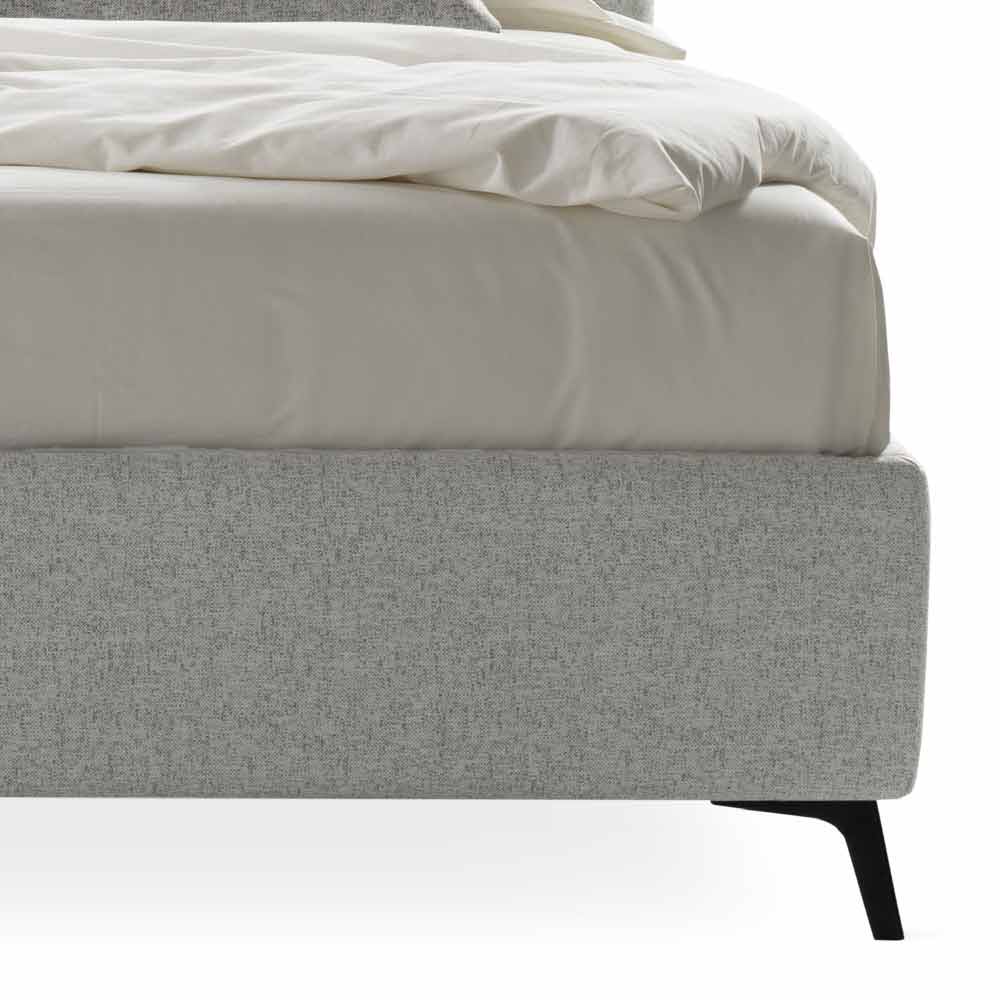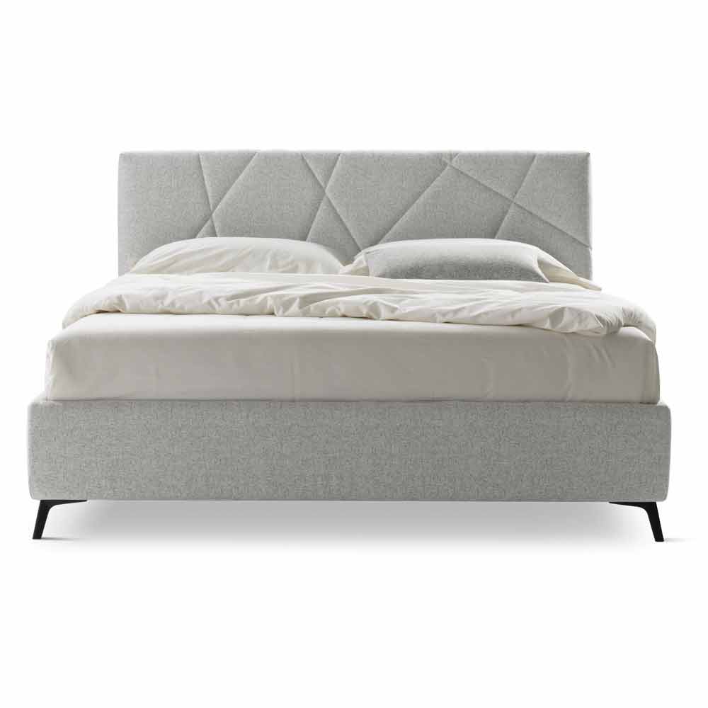 Upholstered luxury double bed with designer dresser in fabric, handcrafted in Italy.