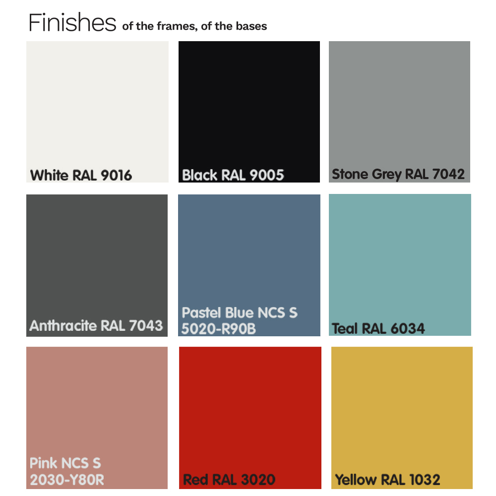 NB : the structure and upholstery of the chair are available in a wide range of different finishes and fabrics.
