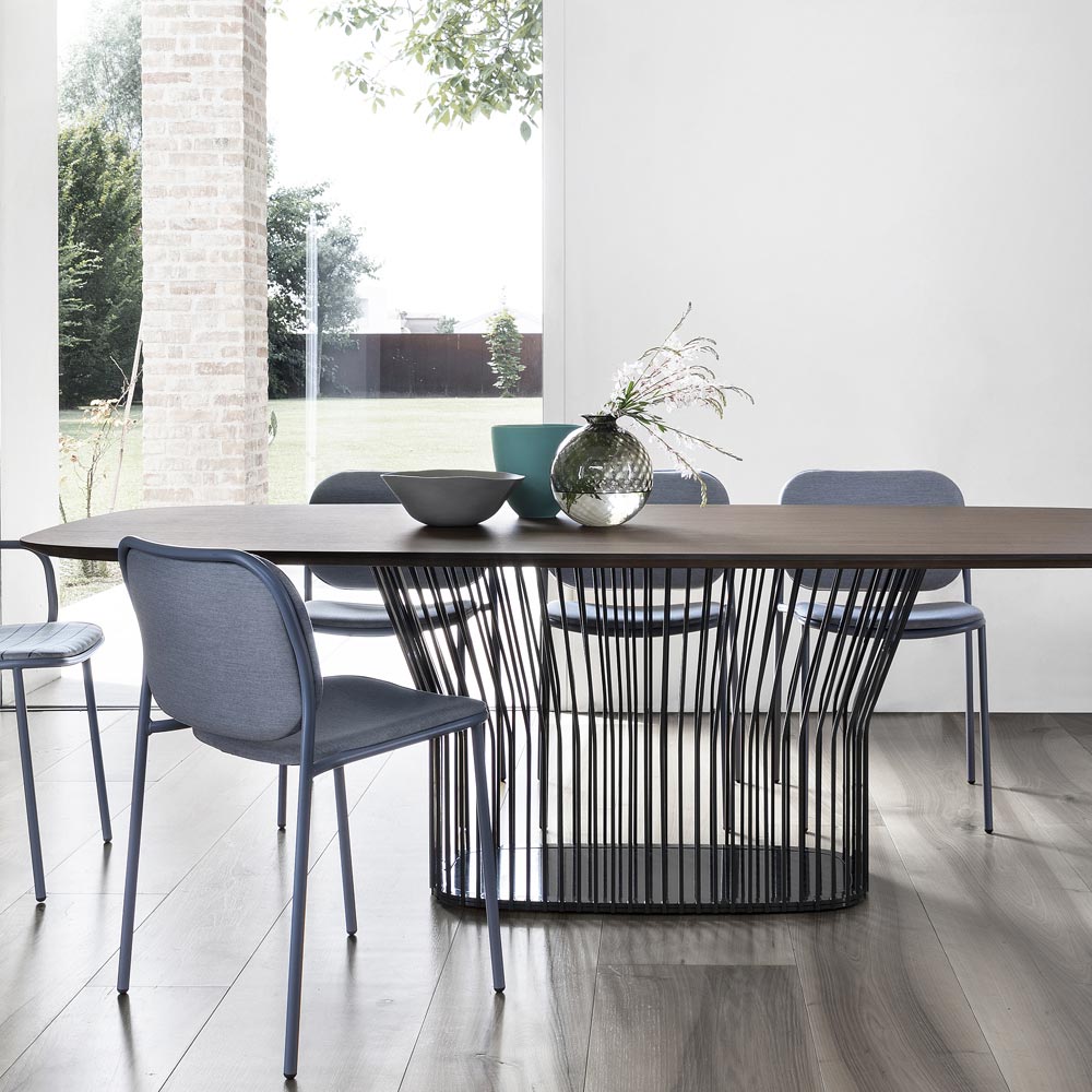 welcoming and comfortable seat, ideal for treating yourself to precious moments of relaxation during lunches and dinners in modern style kitchens or dining rooms. The possibility of stacking also emphasises its functional side and makes it a perfect solution also for contract environments such as bars and restaurants where it is essential to be able to optimise spaces when the chairs are not in use.