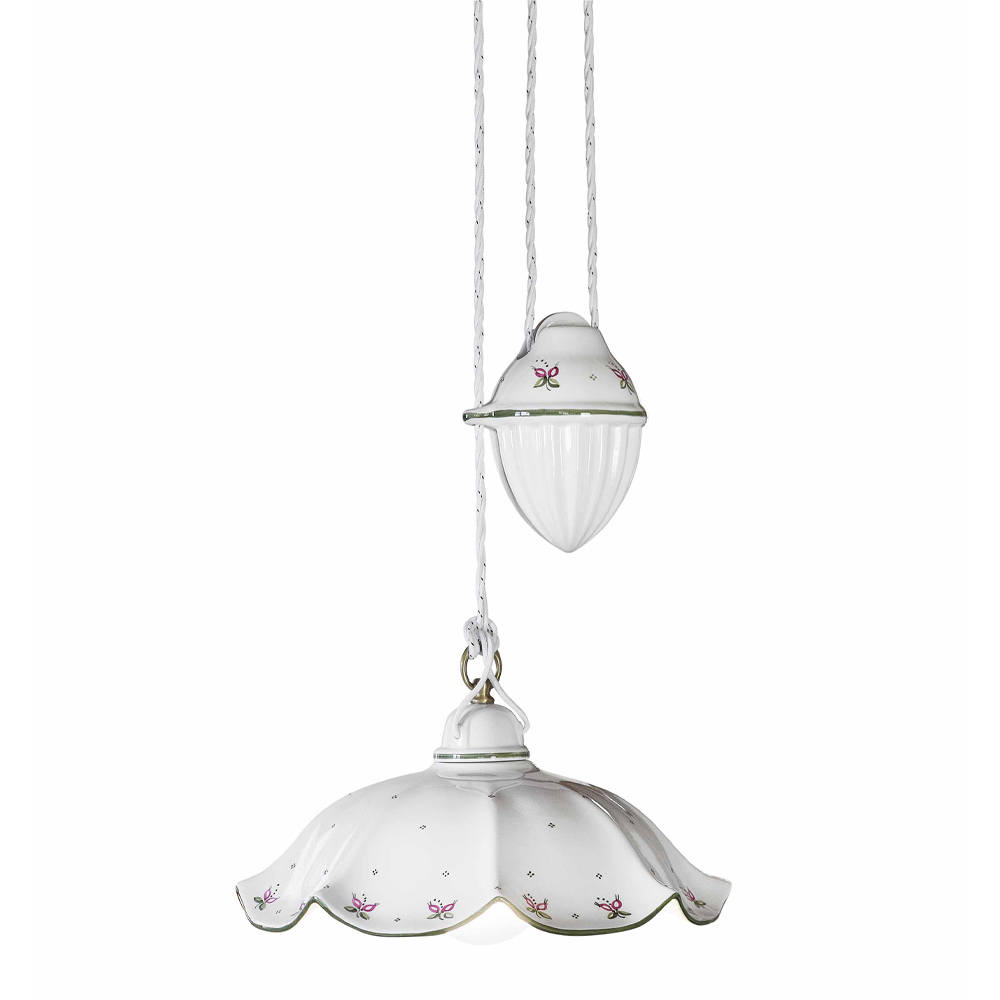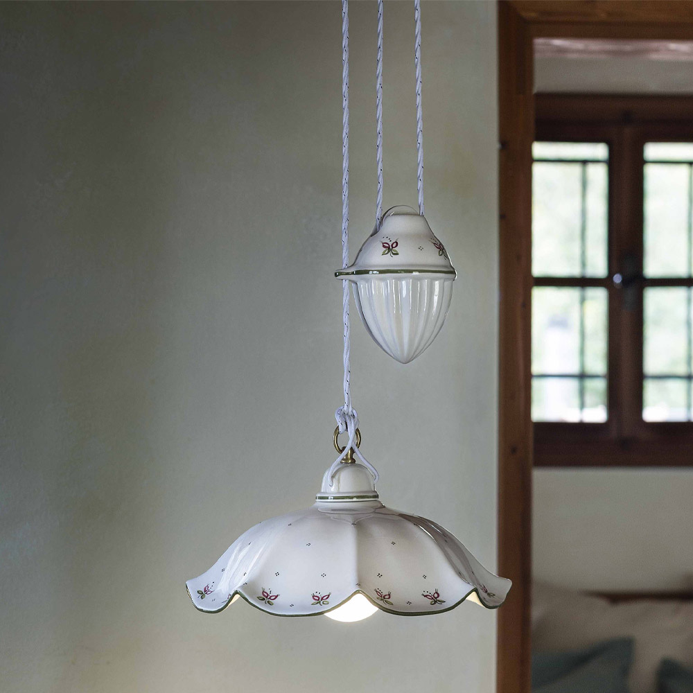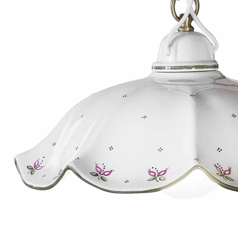 Suspension lamp with hand painted wavy ceramic made in Italy by Ferroluce.
