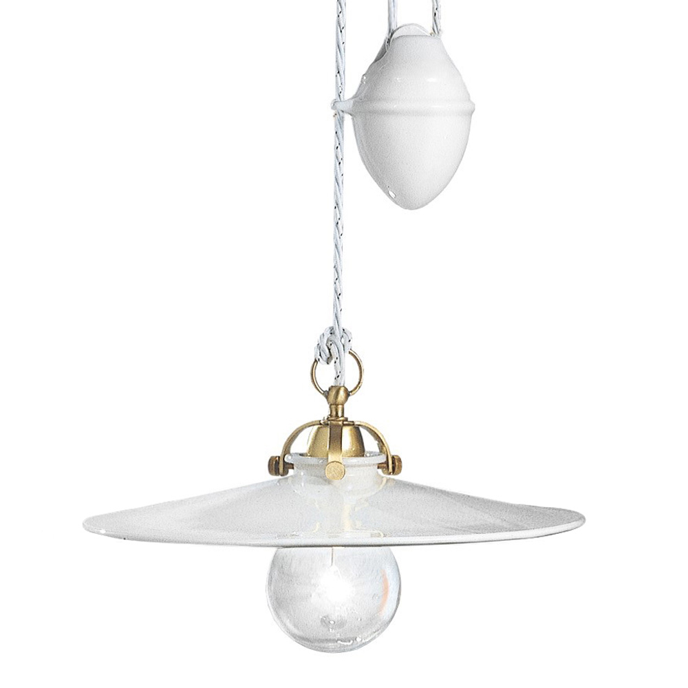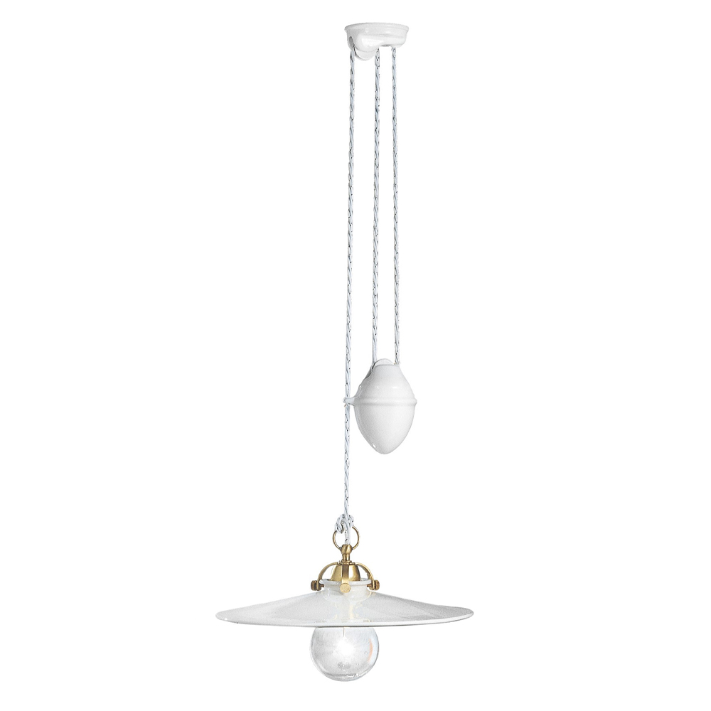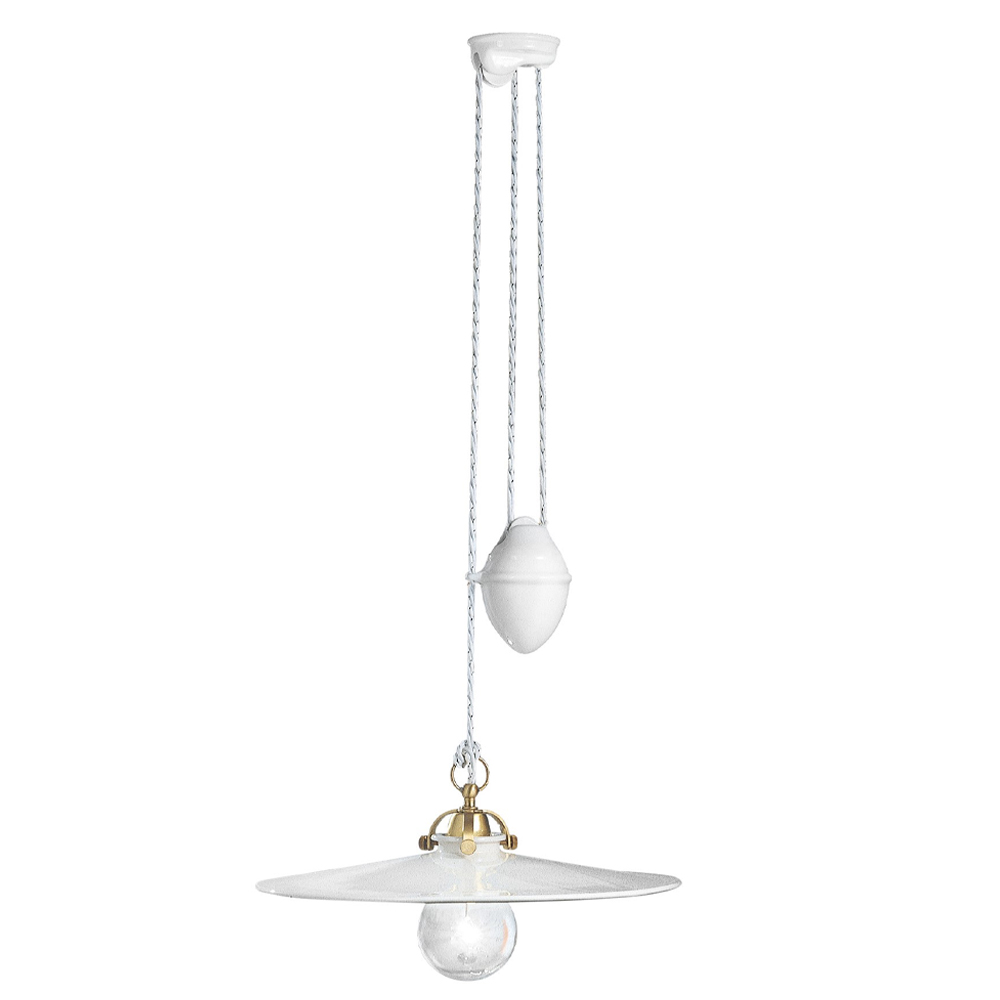 Suspended up and down lamp in iron and glossy ceramic, vintage 2 sizes, made in Italy by Ferroluce.