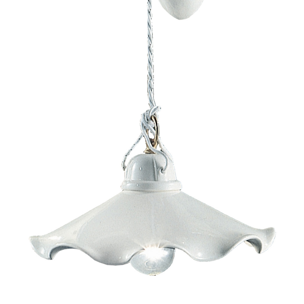 Vintage suspension lamp in iron and corrugated glossy ceramic made in Italy by Ferroluce.