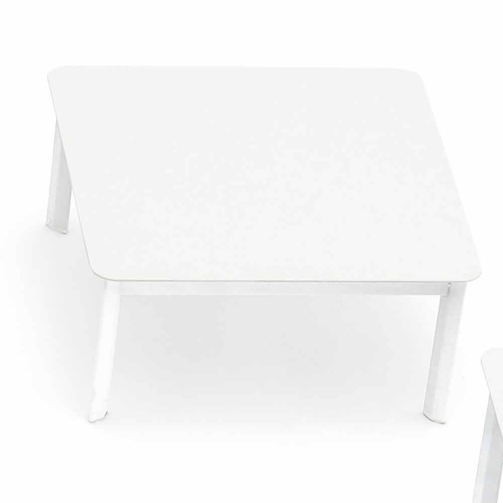 System is a wonderful garden table with a white powder-coated aluminium structure; with top in HPL (sp 1.2) in finishing: silk grey black border, white black border, anthracite black border, white white border, cement brown border, bedonia brown border, corten brown border; or with a bush-hammered ceramic top (sp 1.2) in the finish: white lime and grey porphyry.