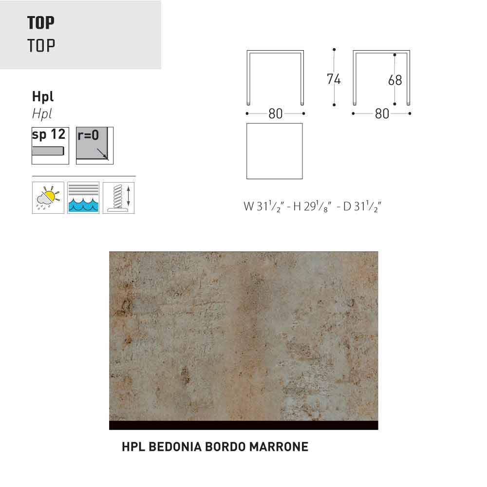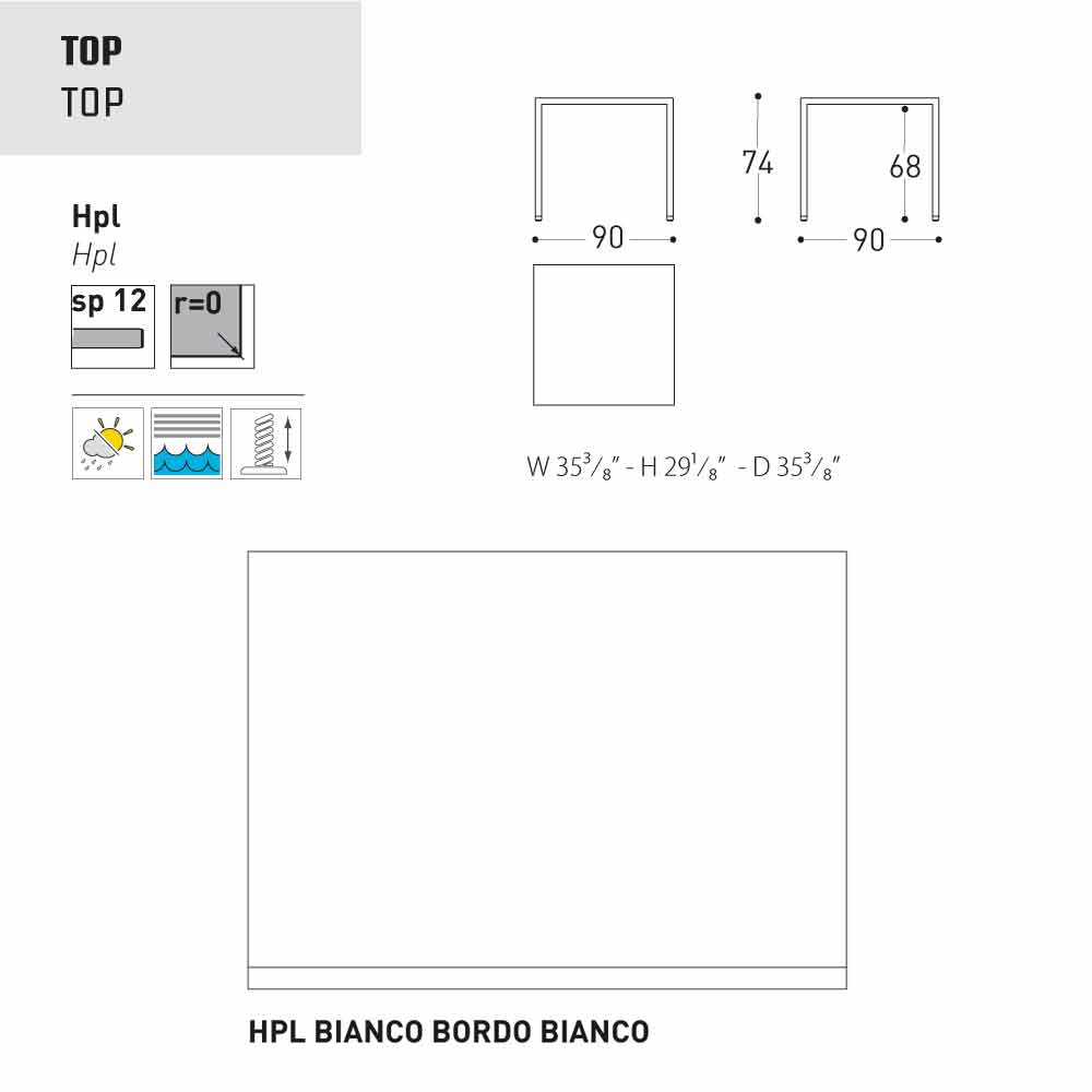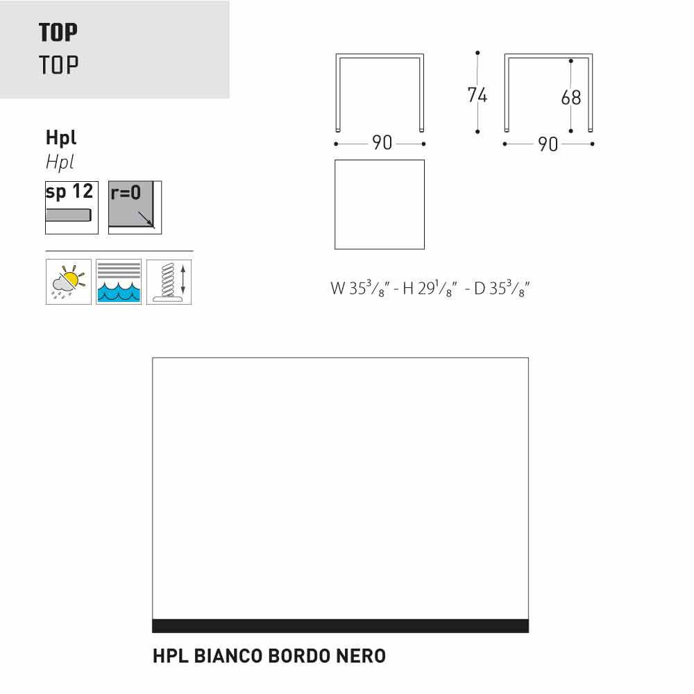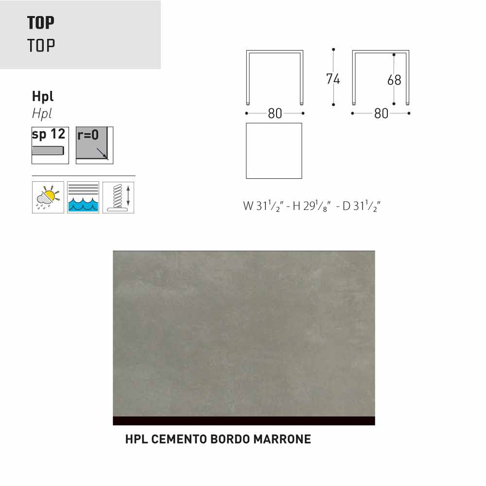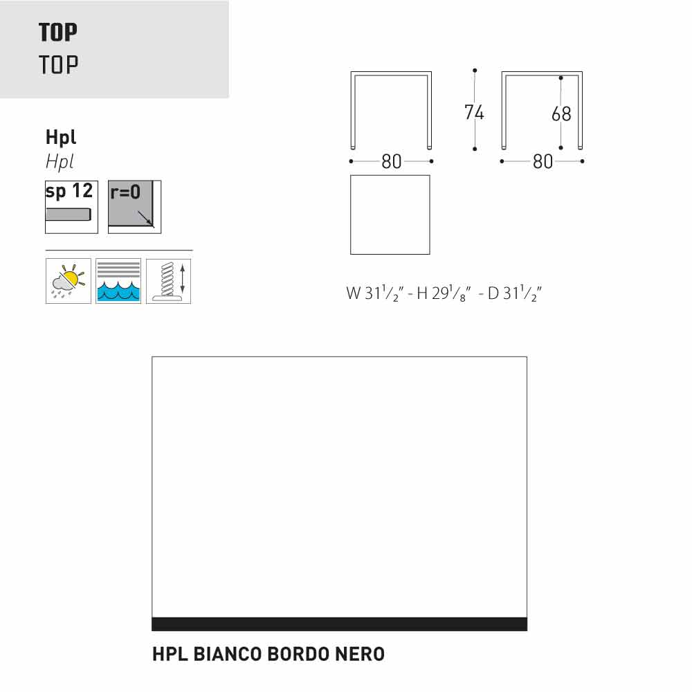 HPL technical features : High-pressure laminates. They are made of several layers of paper (70%) impregnated with thermosetting resins (30%) and compacted for about 45-50 minutes through the combined action of heat ( at about 150 degrees) and high pressure (greater than 7 MPa / Megapascal per square metre.) The result is a stable, nonreactive, non-porous and high-density product. It has physical and chemical features of high mechanical strength (controlled temperature excursion +80/-40 degrees, for less than 30 seconds at extreme temperatures). It resists to light exposure and temperature variations, even in marine environments.