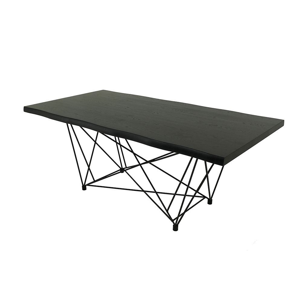 veneered wood top with irregular debarked edge and a