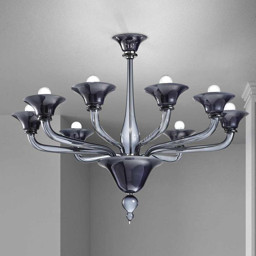 8 lights chandelier in Venice glass and metal Made in Italy.