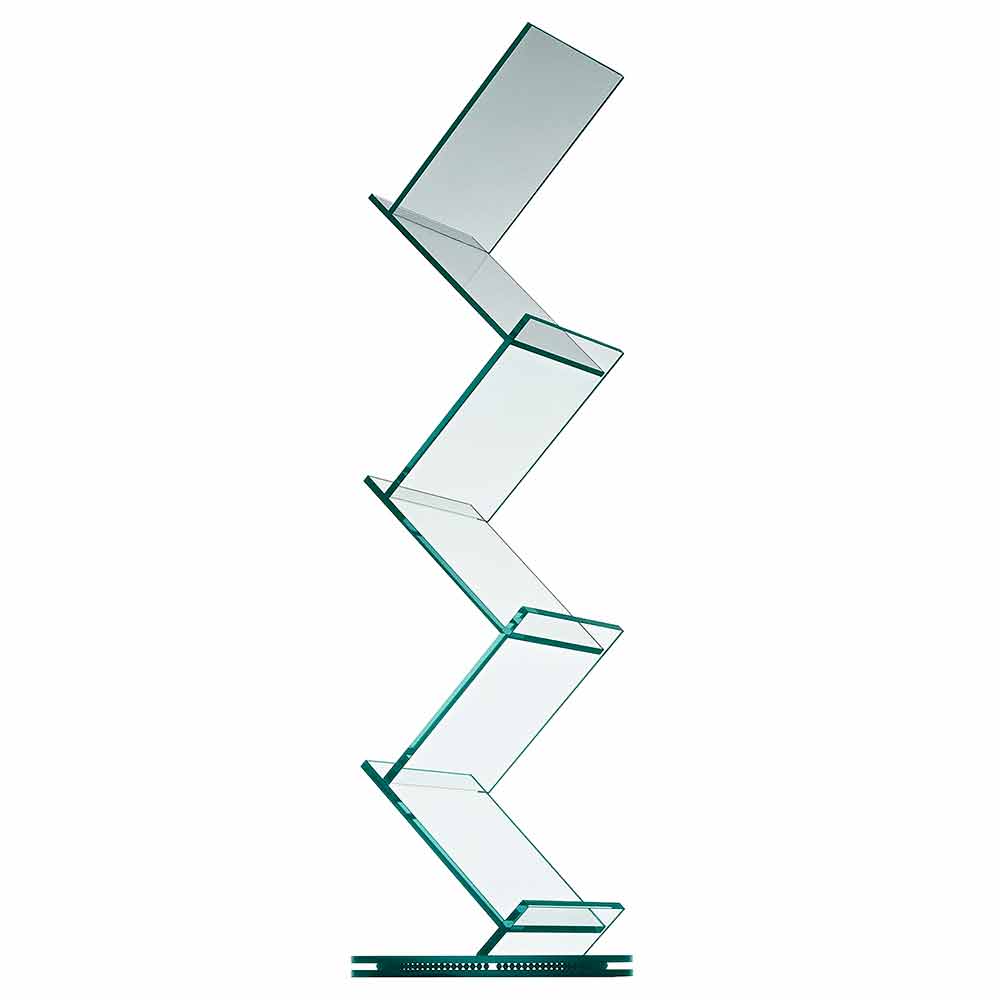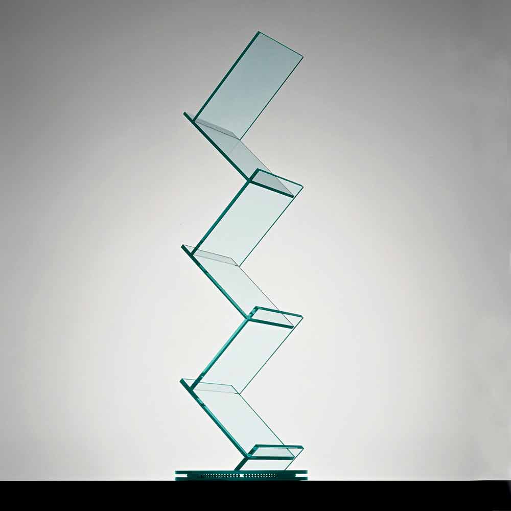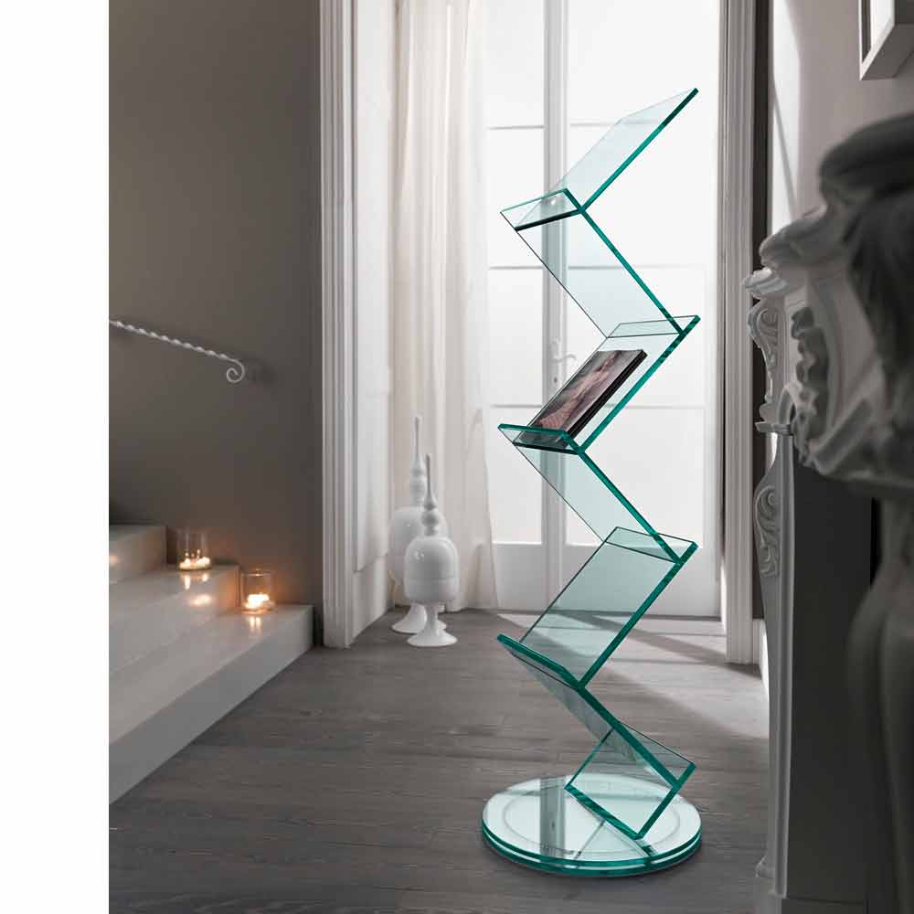 This magazine rack bookcase is characterized by its determined and elegant design entirely made of transparent glass.