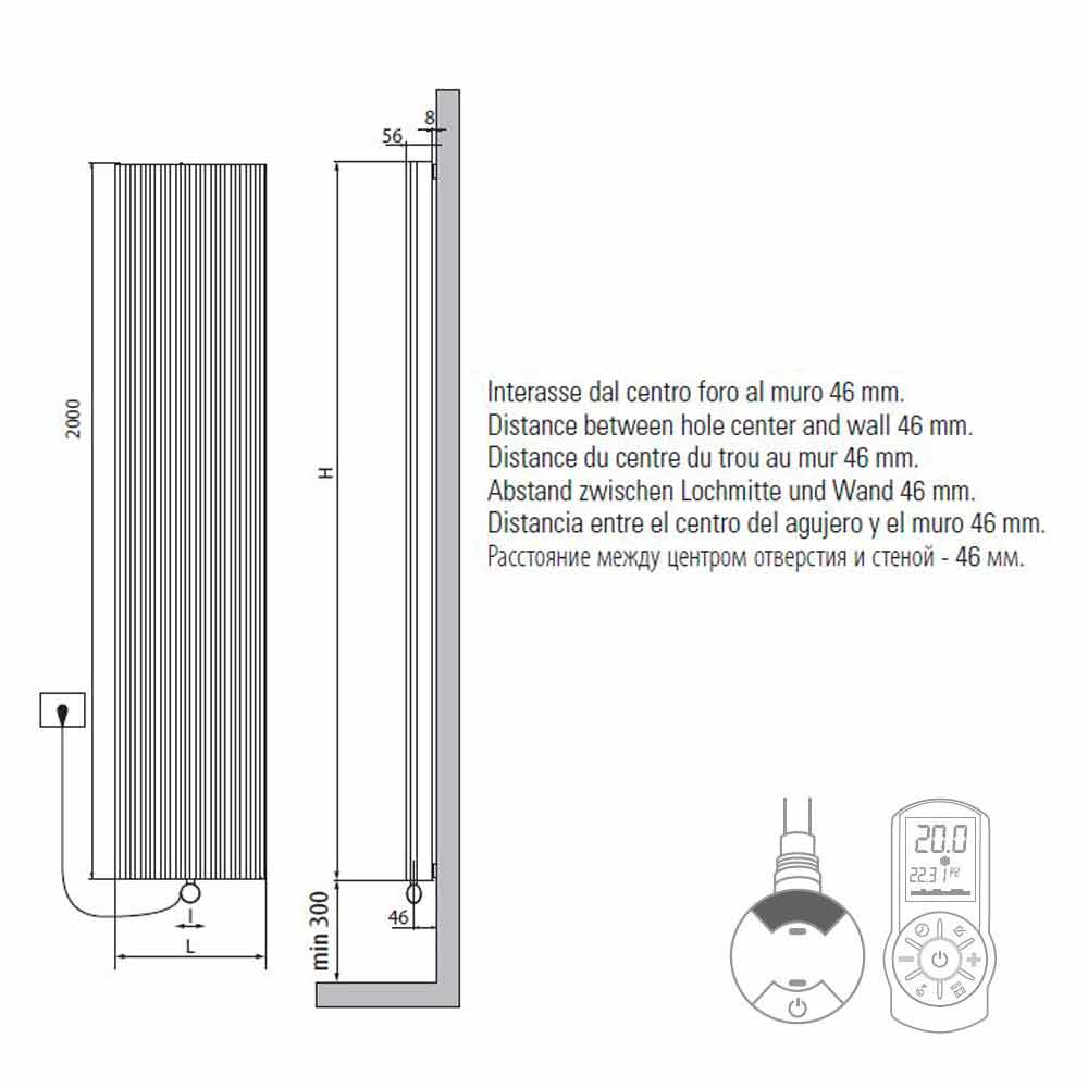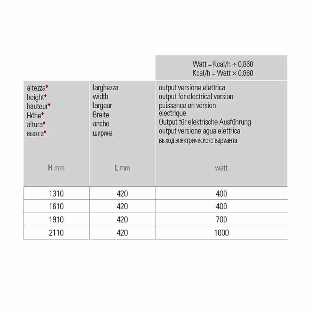 Electric wall-mounted aluminium radiator, modern design, made in Italy.