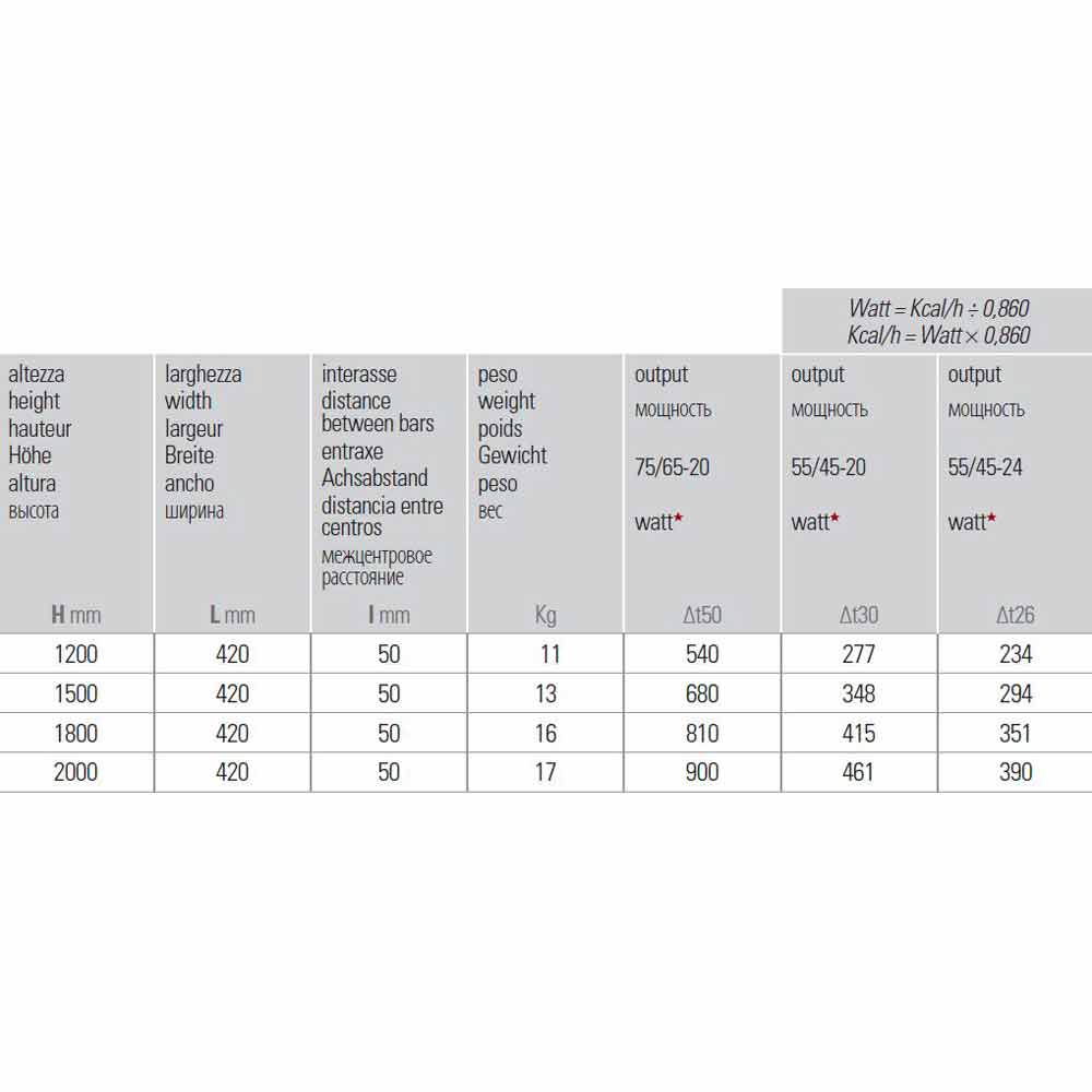 Available in different sizes *:- H 1200 x L 420 x Inter. 50 mm x Output w (Īt50 *) 540; Yield w (Īt30 *) 277; Yield w (Ī26 *) 234;