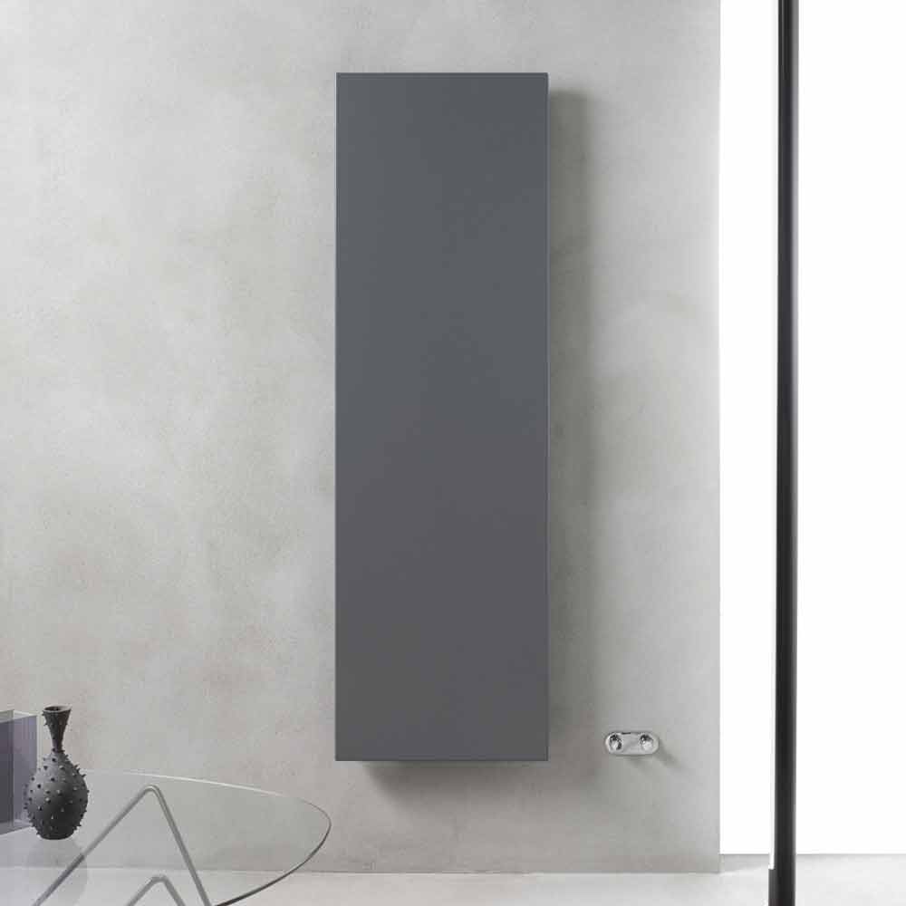Modern design vertical wall-mounted radiator in slate grey steel made in Italy.